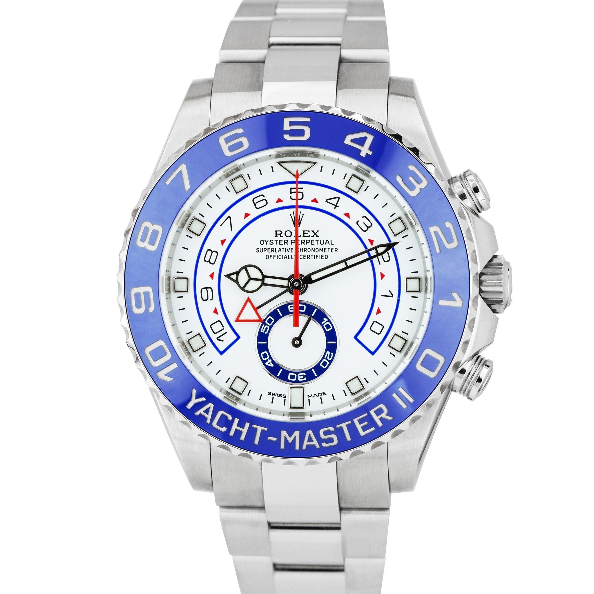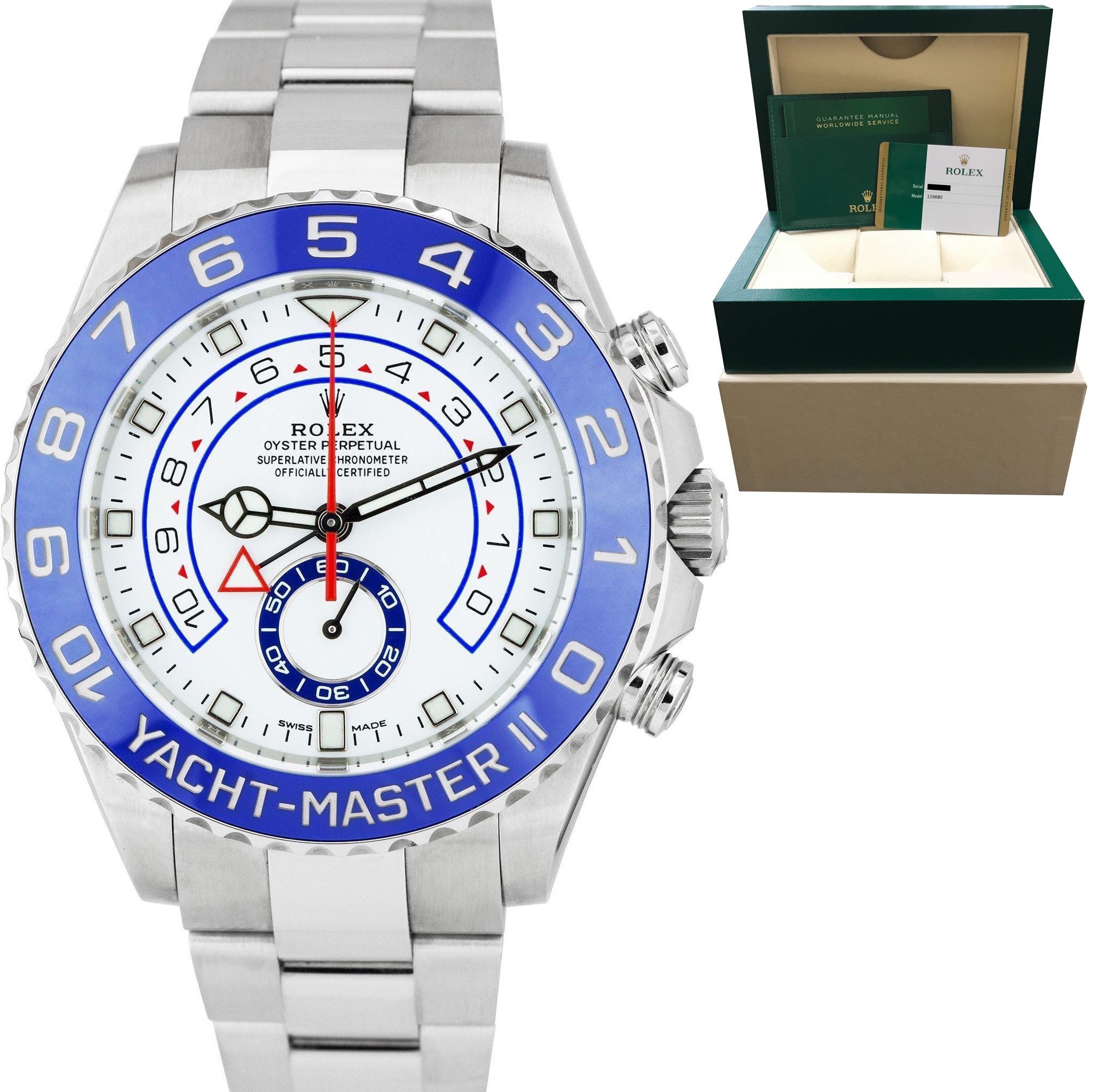 Rolex Yacht-Master II 44mm NEWEST HANDS Stainless White Blue 116680 Watch B+P