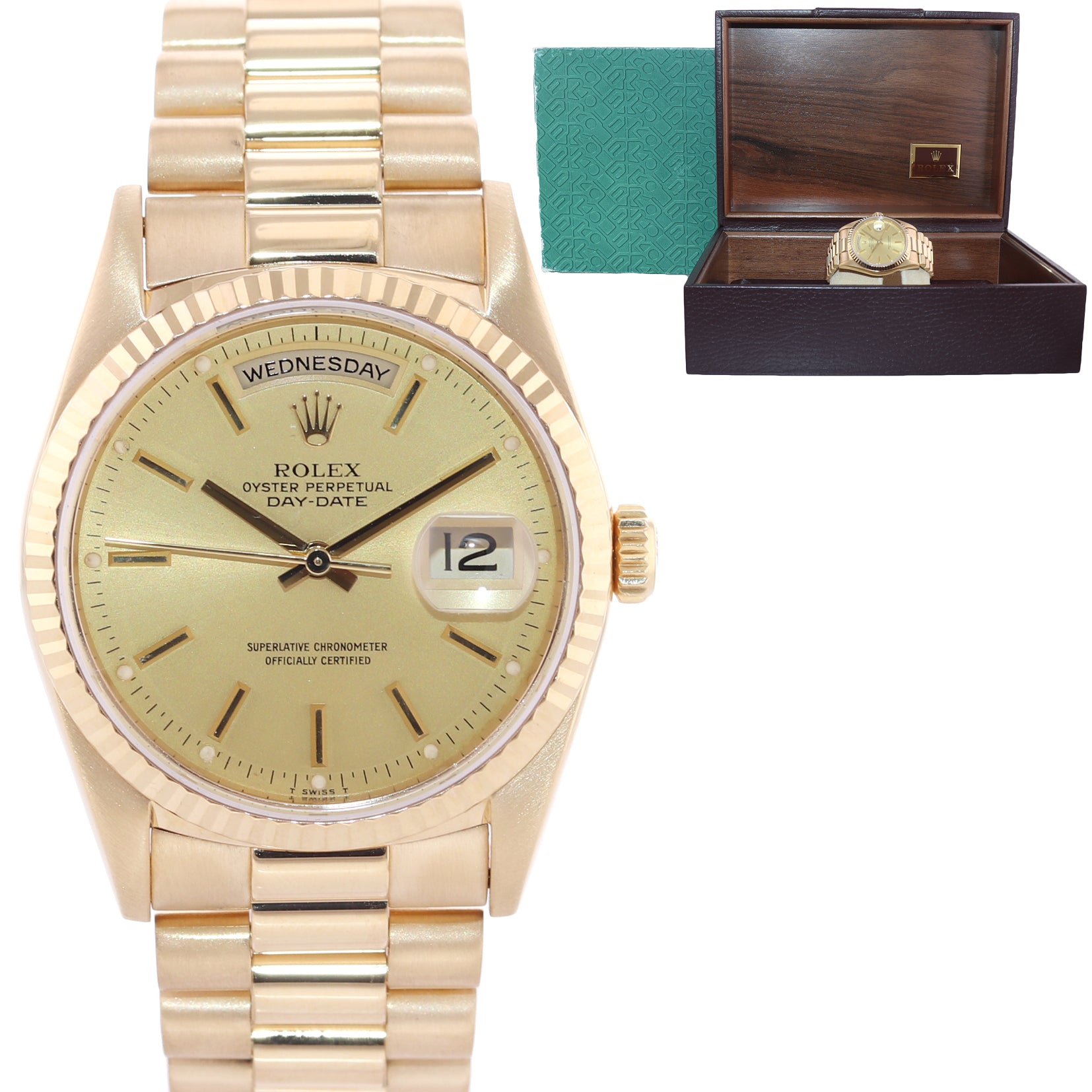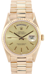 | Bezel | Original Rolex Fixed 18K Yellow Gold Fluted Bezel |