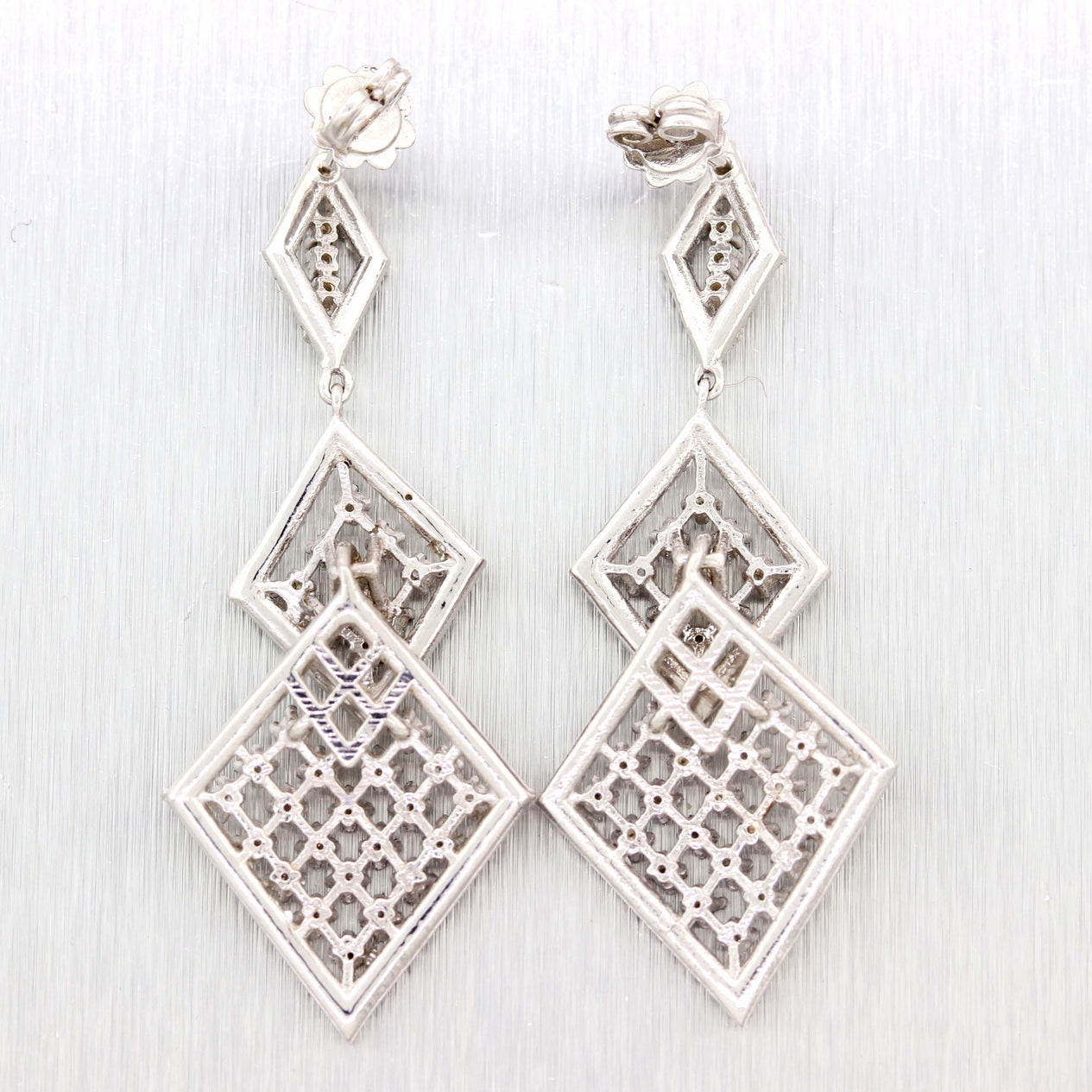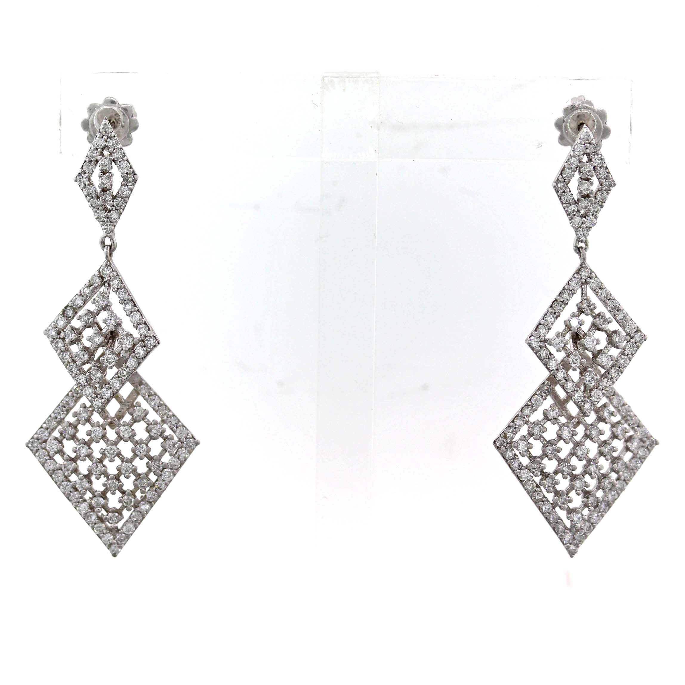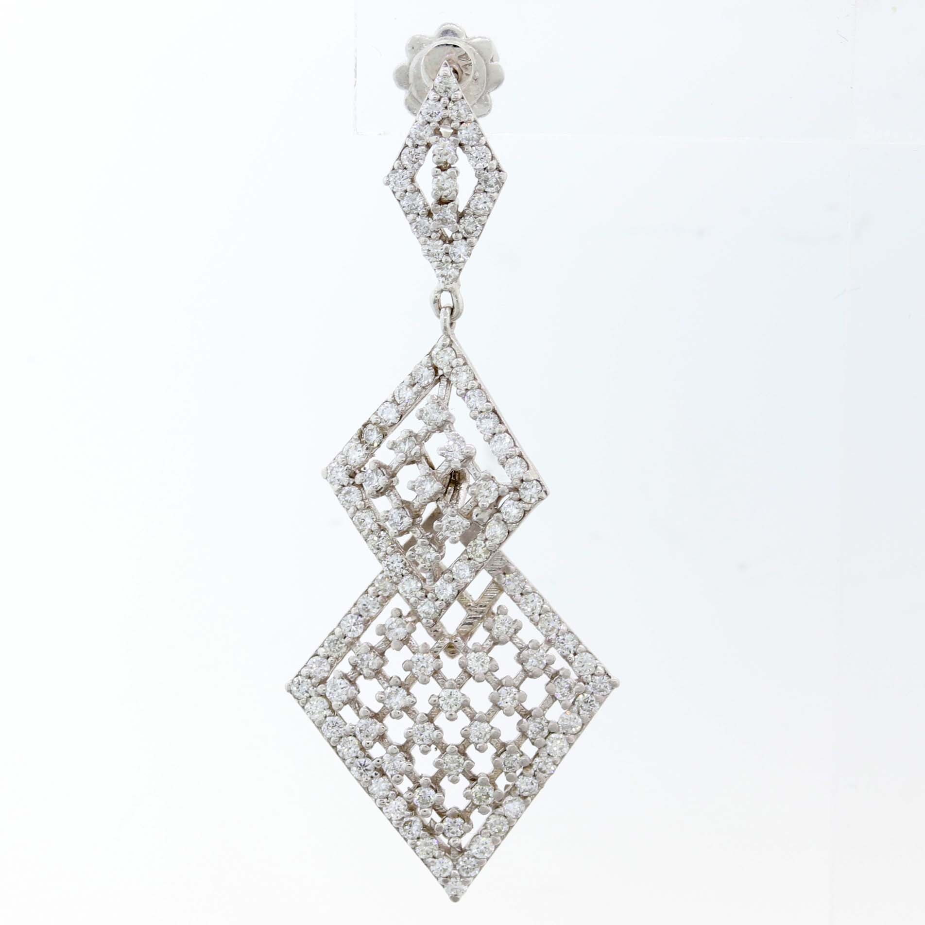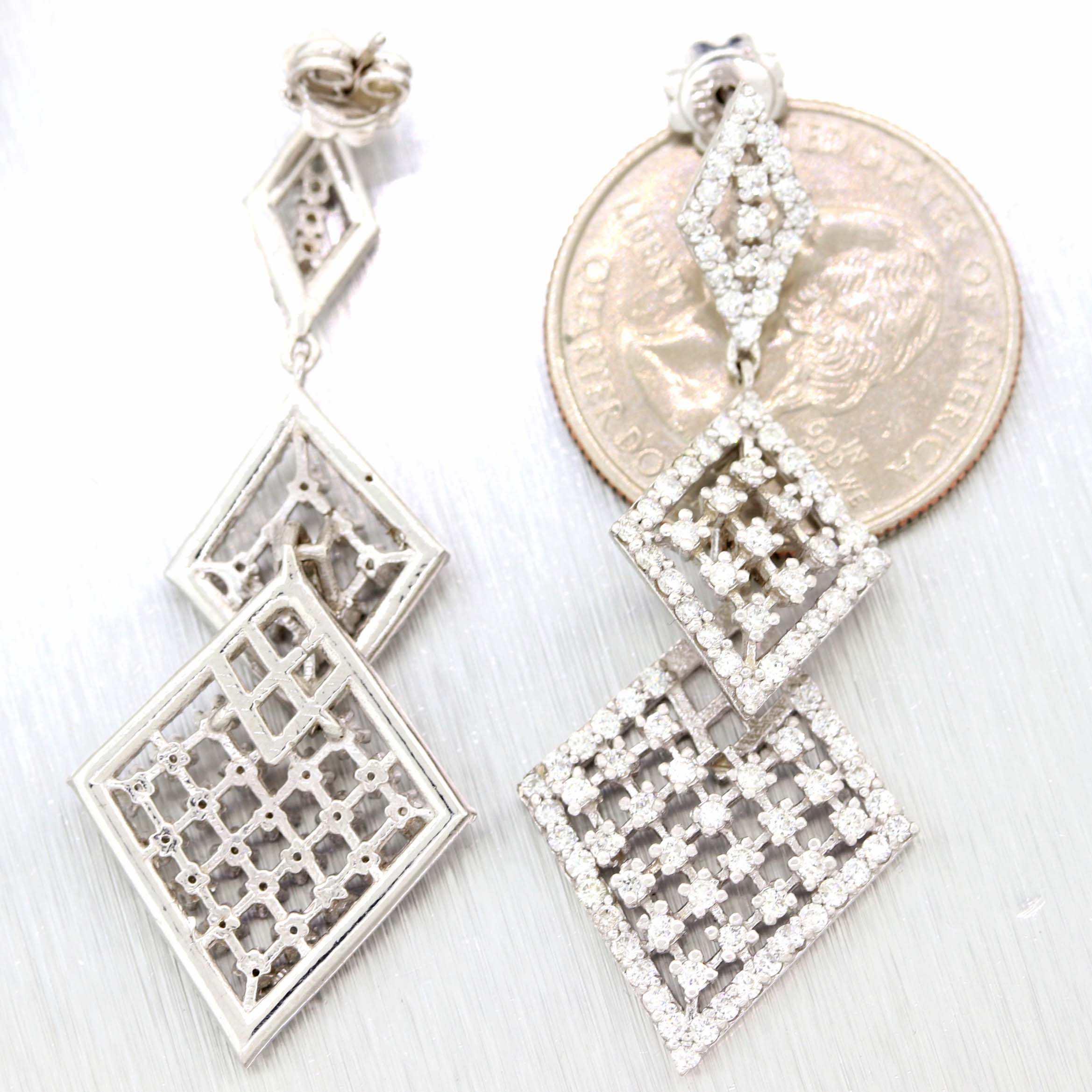 Offered for sell is a beautiful pair of Solid 14k White Gold 2.65ctw Diamond Drop Dangle Lace Chandelier Earrings. It will come professionally packaged in a Collectors Coins & Jewelry gift presentation box.