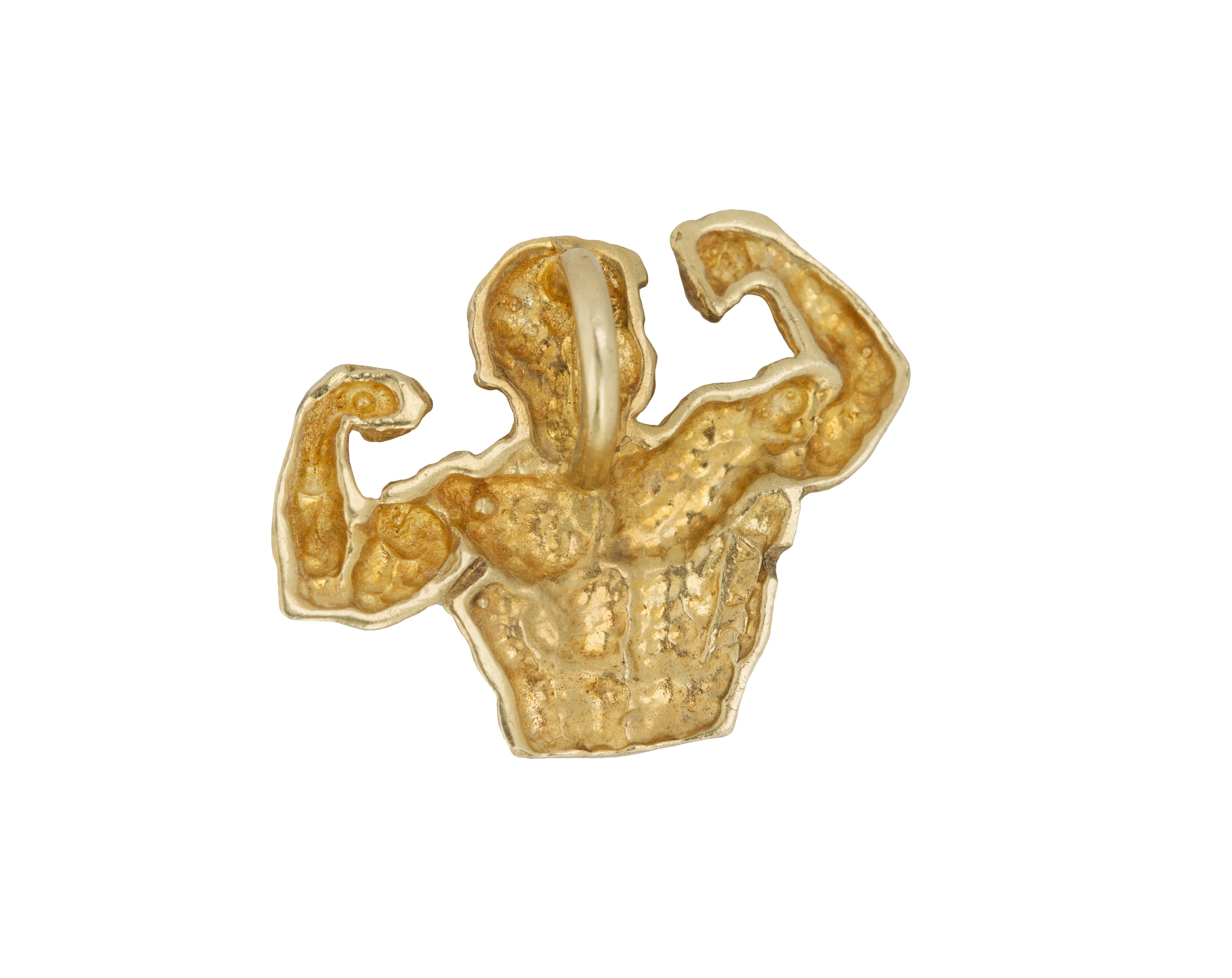 Solid 14K Yellow Gold Body Builder Muscle Man Arnold Schwarzenegger Pendant