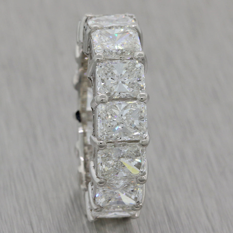 This is a beautiful Solid Platinum 8.25ctw Radiant Cut G VS2 Diamond 6mm Eternity Band Ring. It will come in a lovely ring box for a perfect presentation and our unconditional 30 day money back return policy.