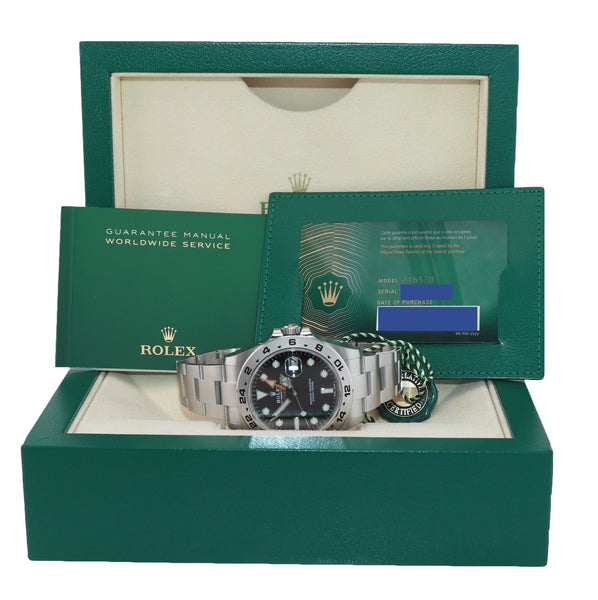 STICKERS 2021 PAPERS Rolex Explorer II 42mm 216570 Black Steel GMT Date Watch Box