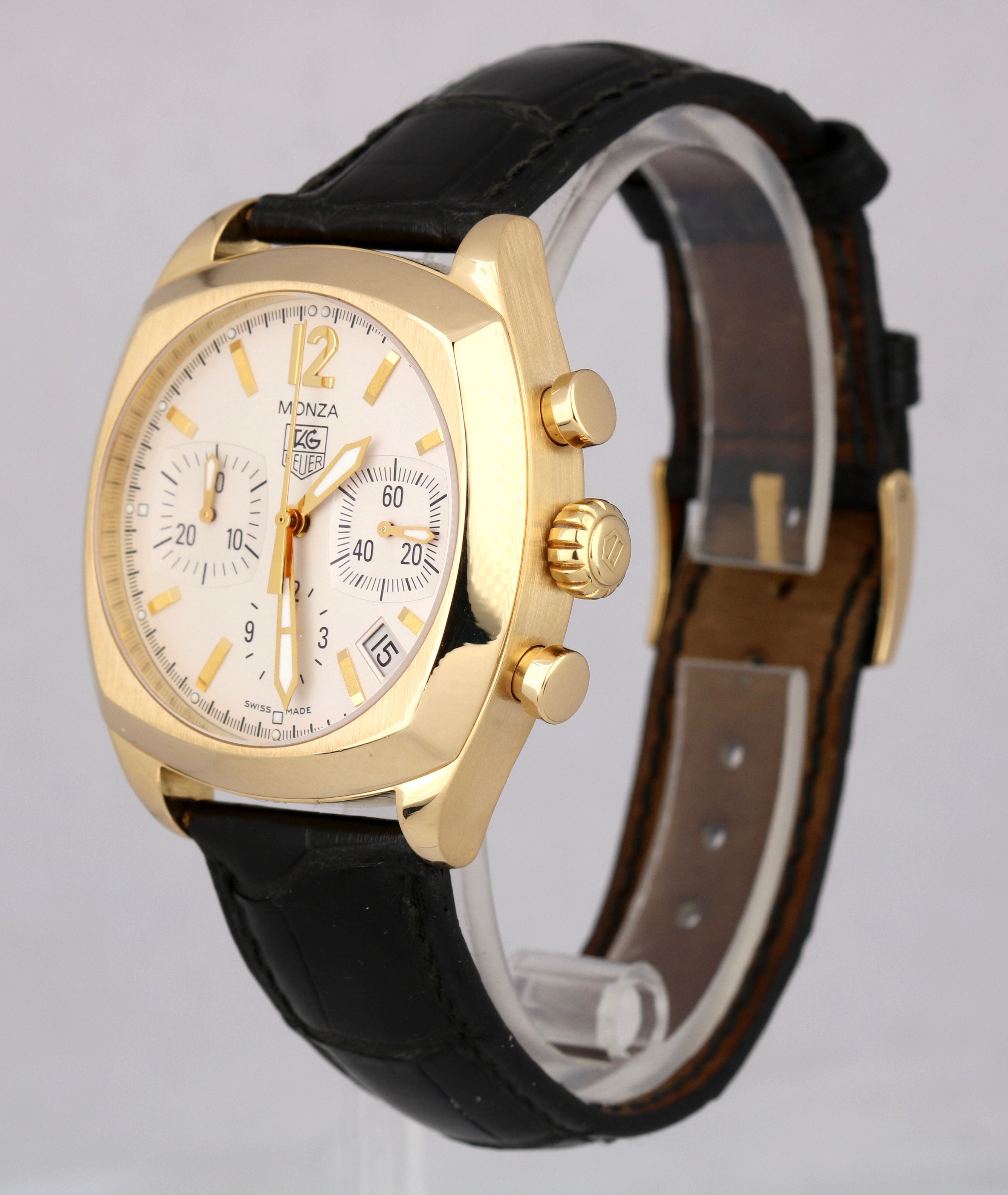 Tag Heuer Monza Chronograph CR514A Calibre 17 White 38mm 18K Yellow Gold Watch