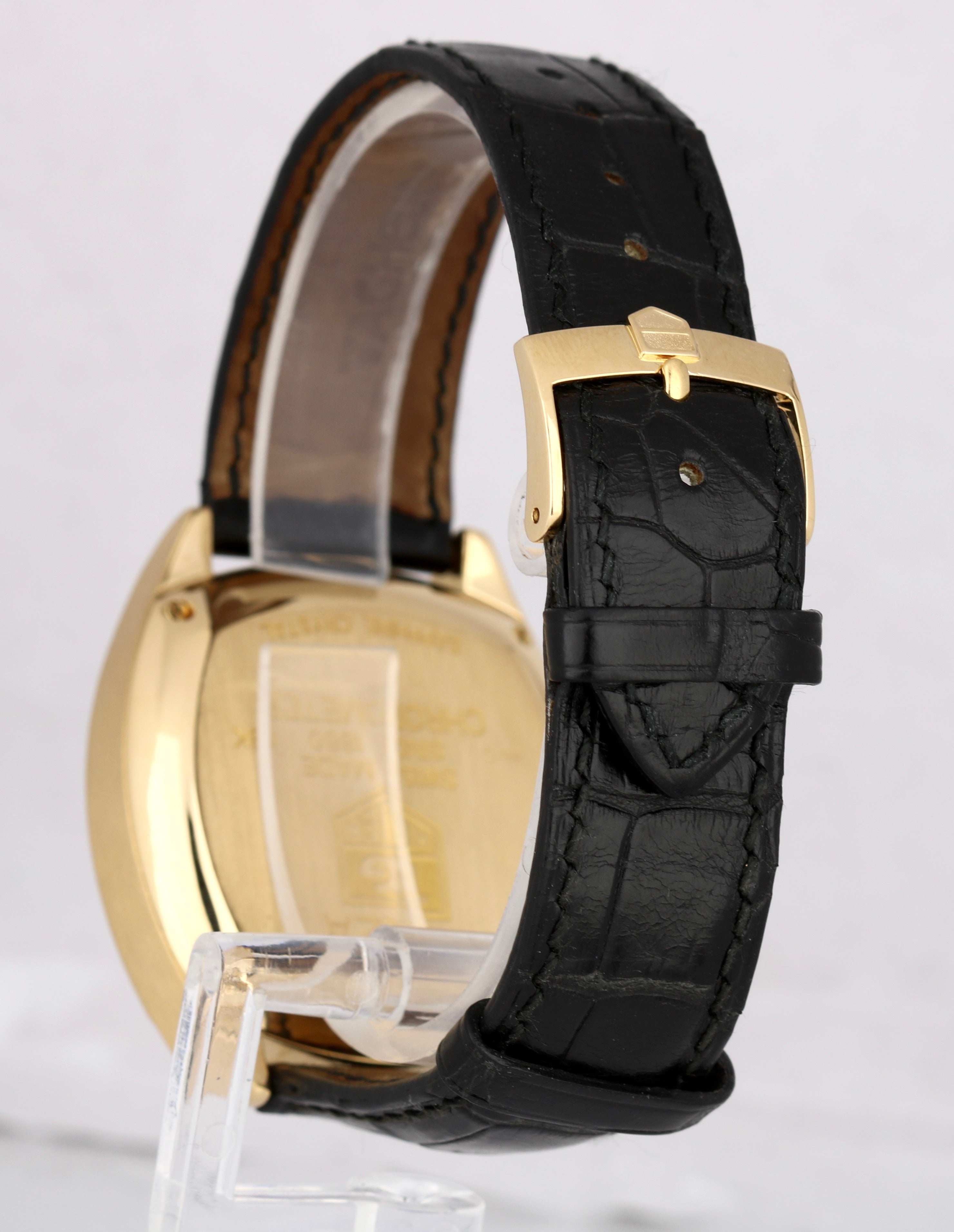 | Band | Original Tag Heuer Black Leather Strap with an 18K Yellow Gold Buckle |