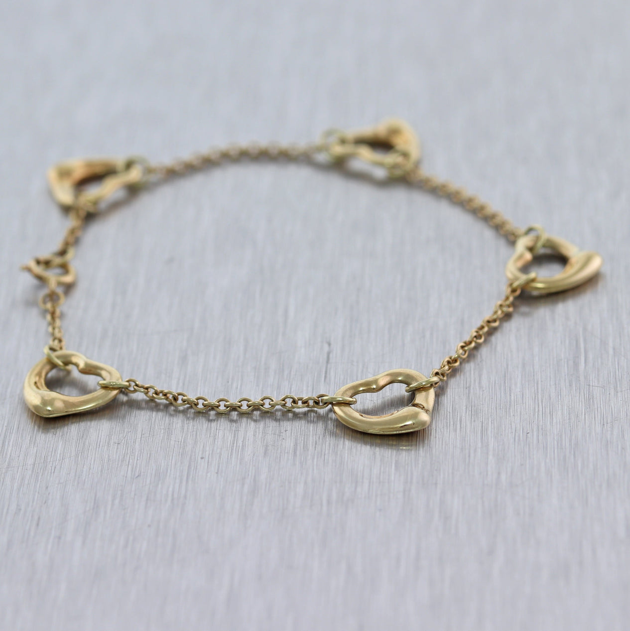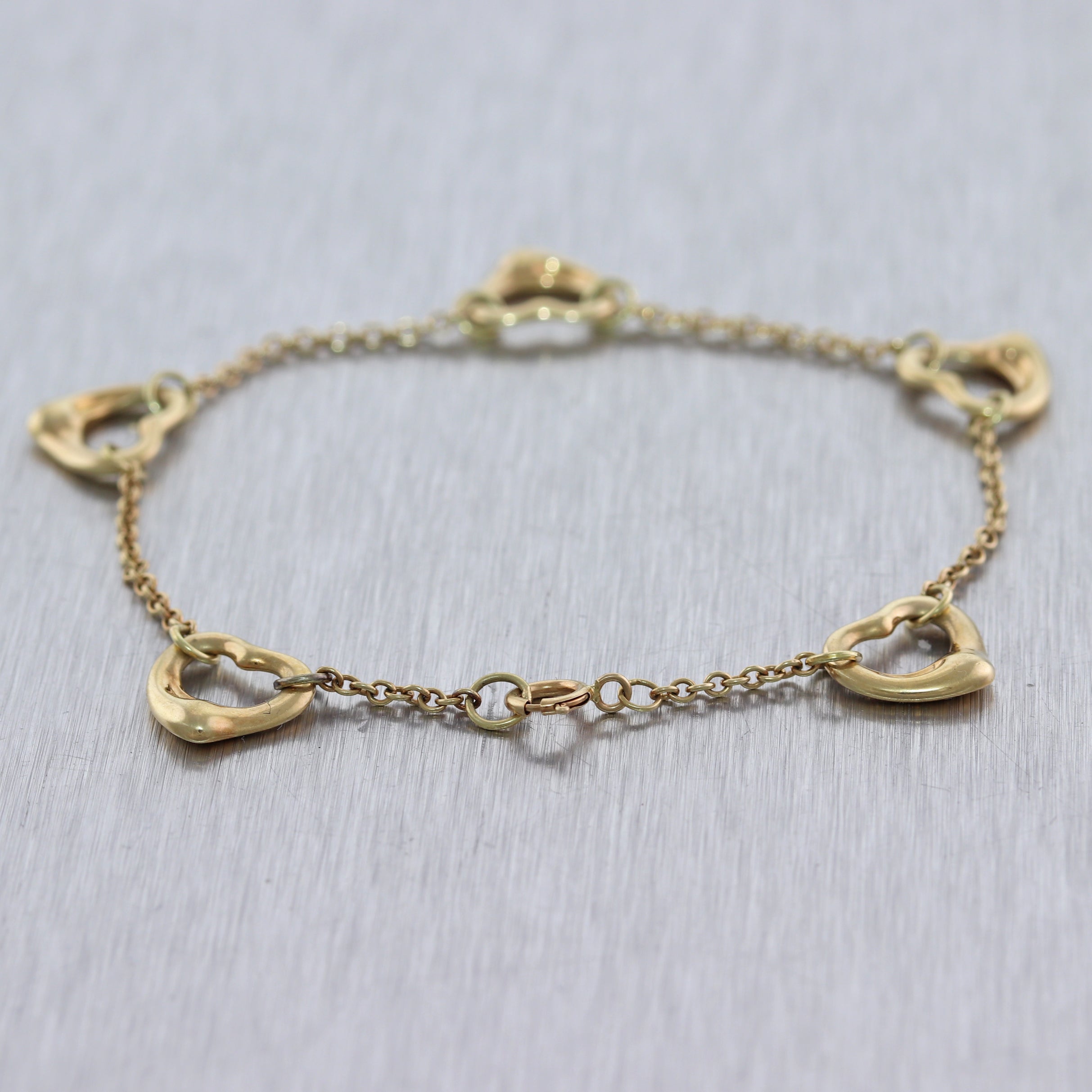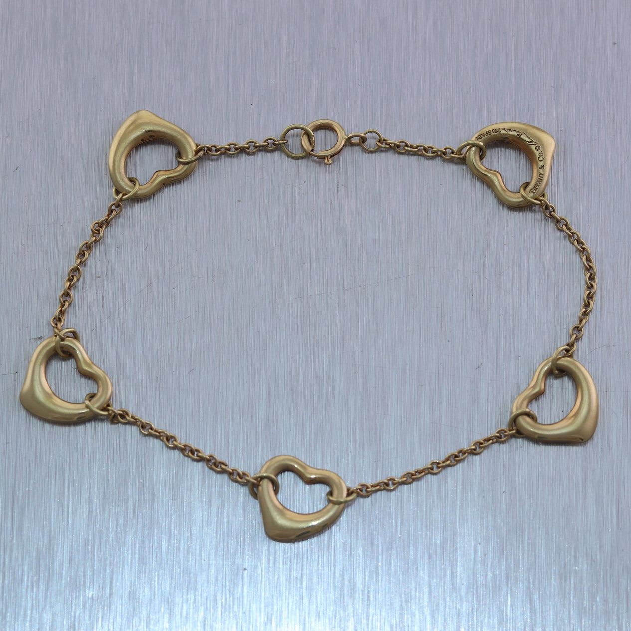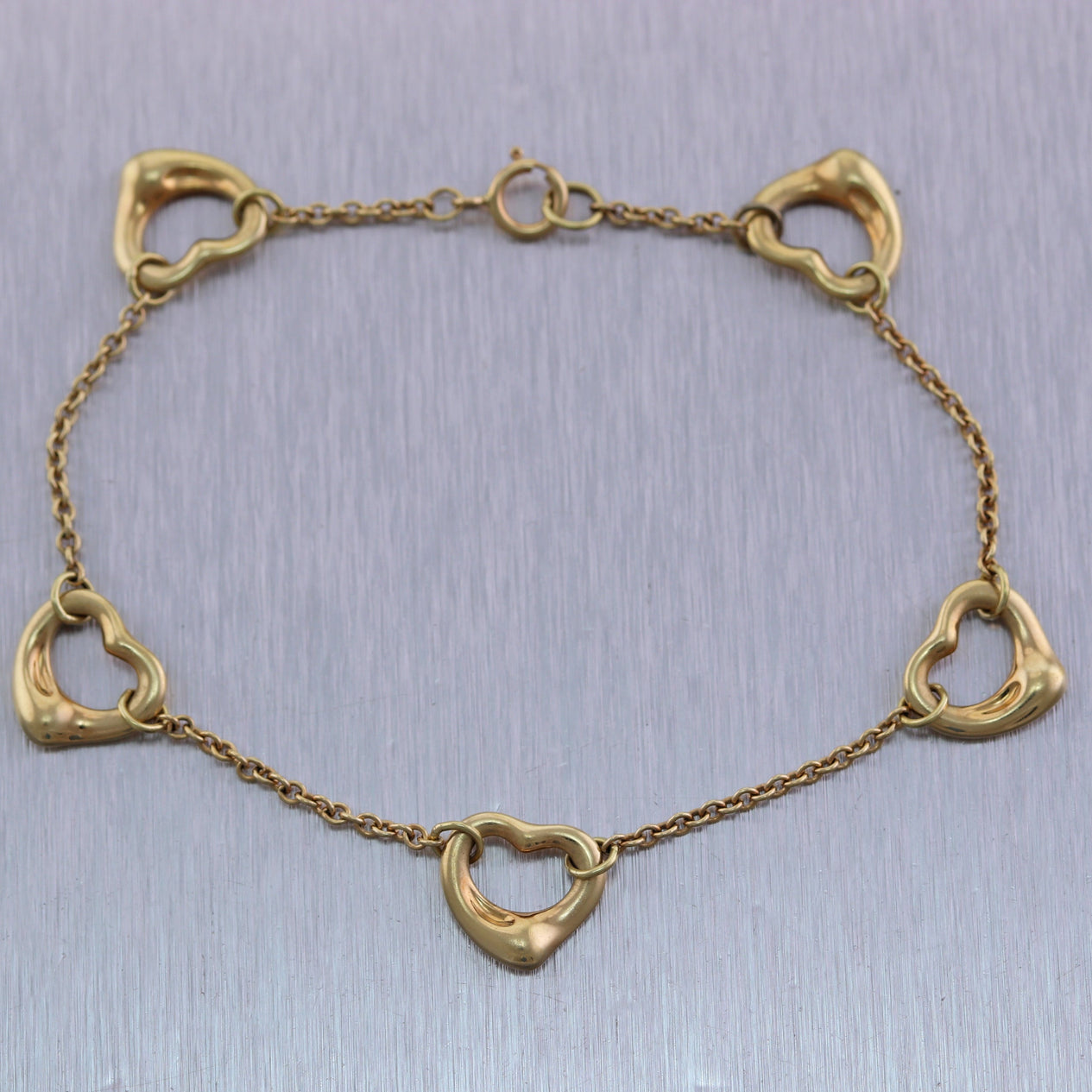 For your consideration, a an authentic Tiffany & Co. Elsa Peretti 18k Yellow Gold Medium Open Heart Bracelet. This piece will come packaged in a beautiful gift presentation box and our unconditional 30day money back return policy. G3