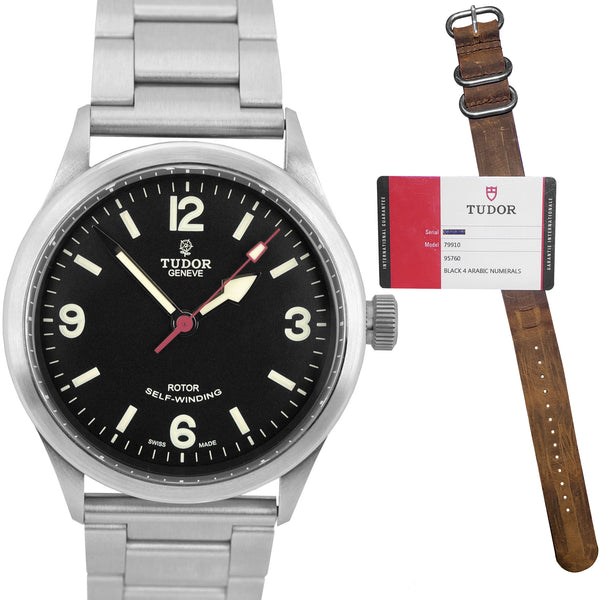 | Band | Original Tudor Stainless Steel Bracelet with a Flip-Lock Deployment Clasp, as well as a Brown Suede Nato Strap (Pictured) |