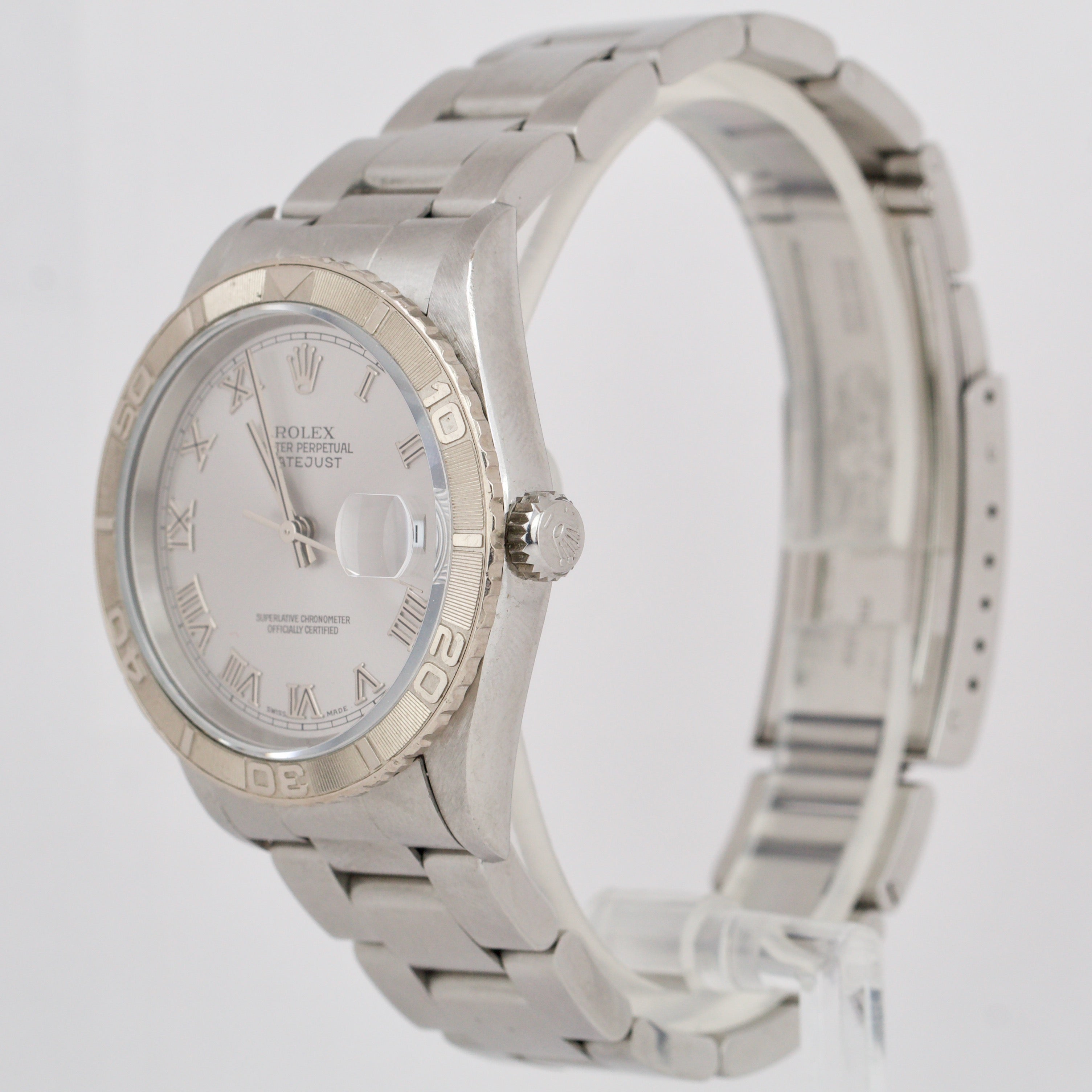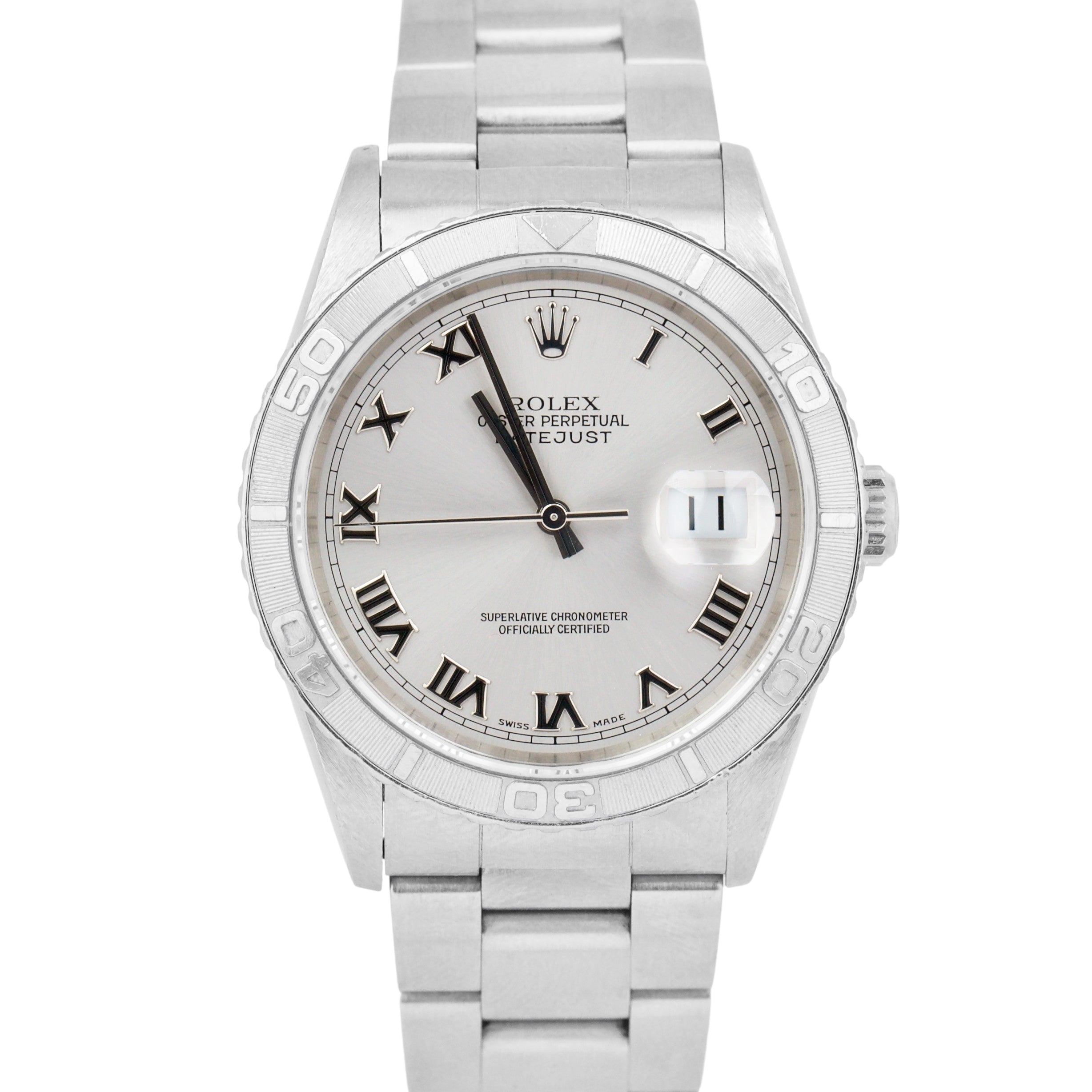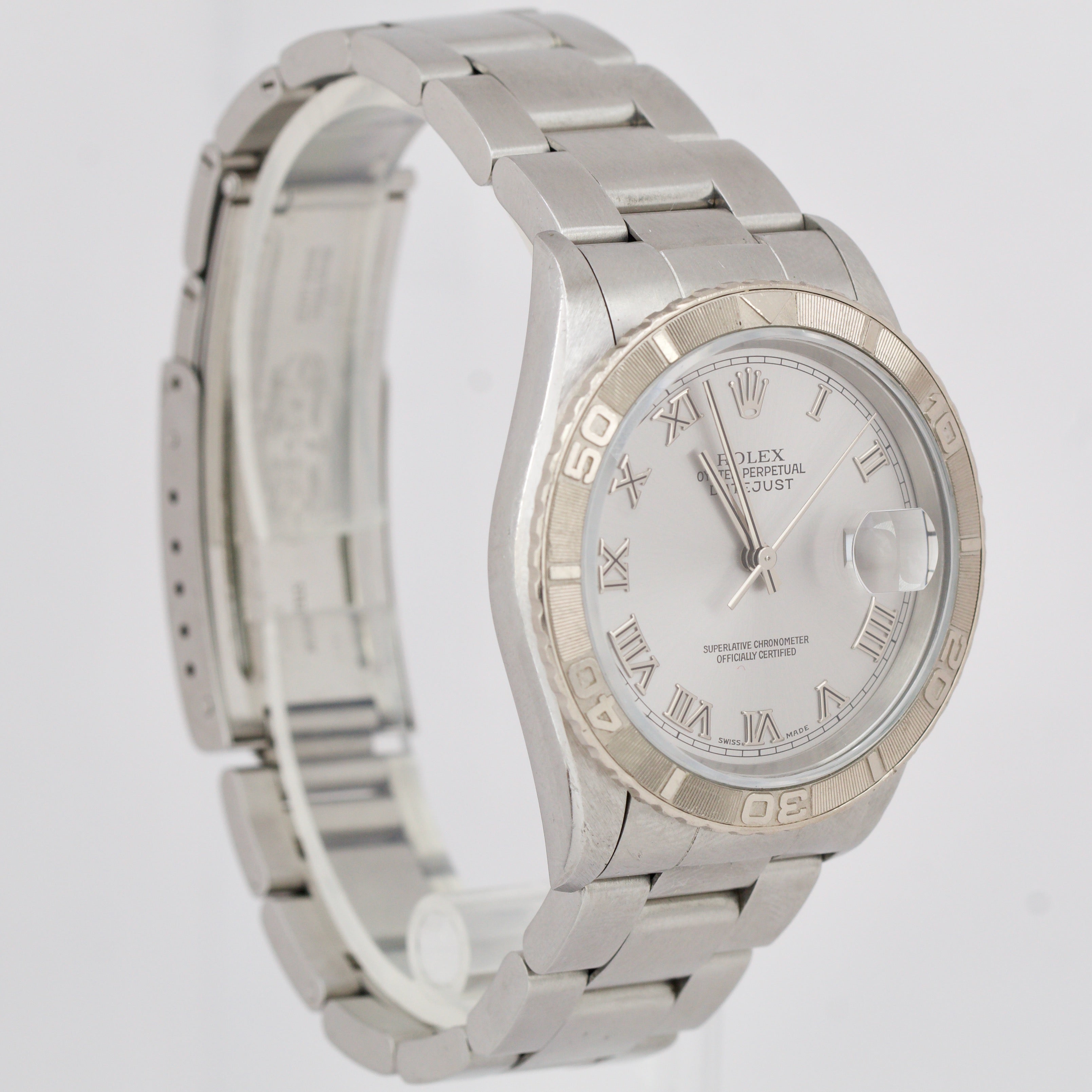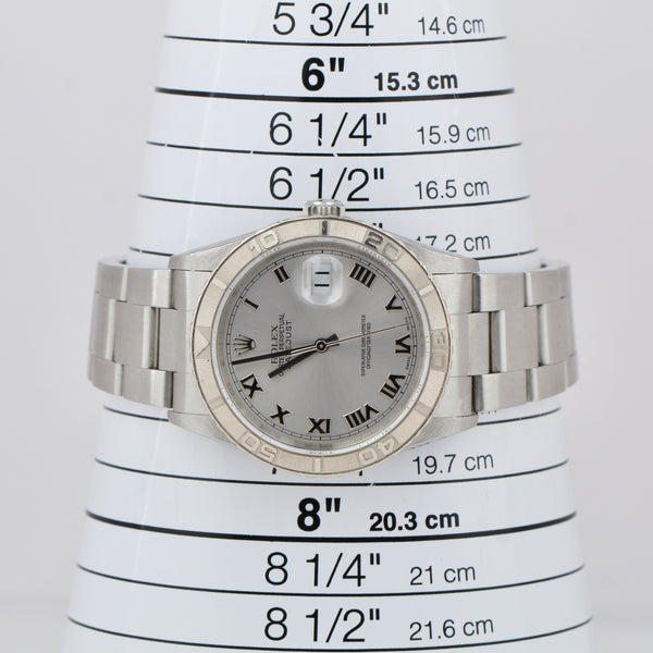 UNPOL. Rolex DateJust 36mm Turn-O-Graph Silver Roman Stainless Watch 16264 B&P