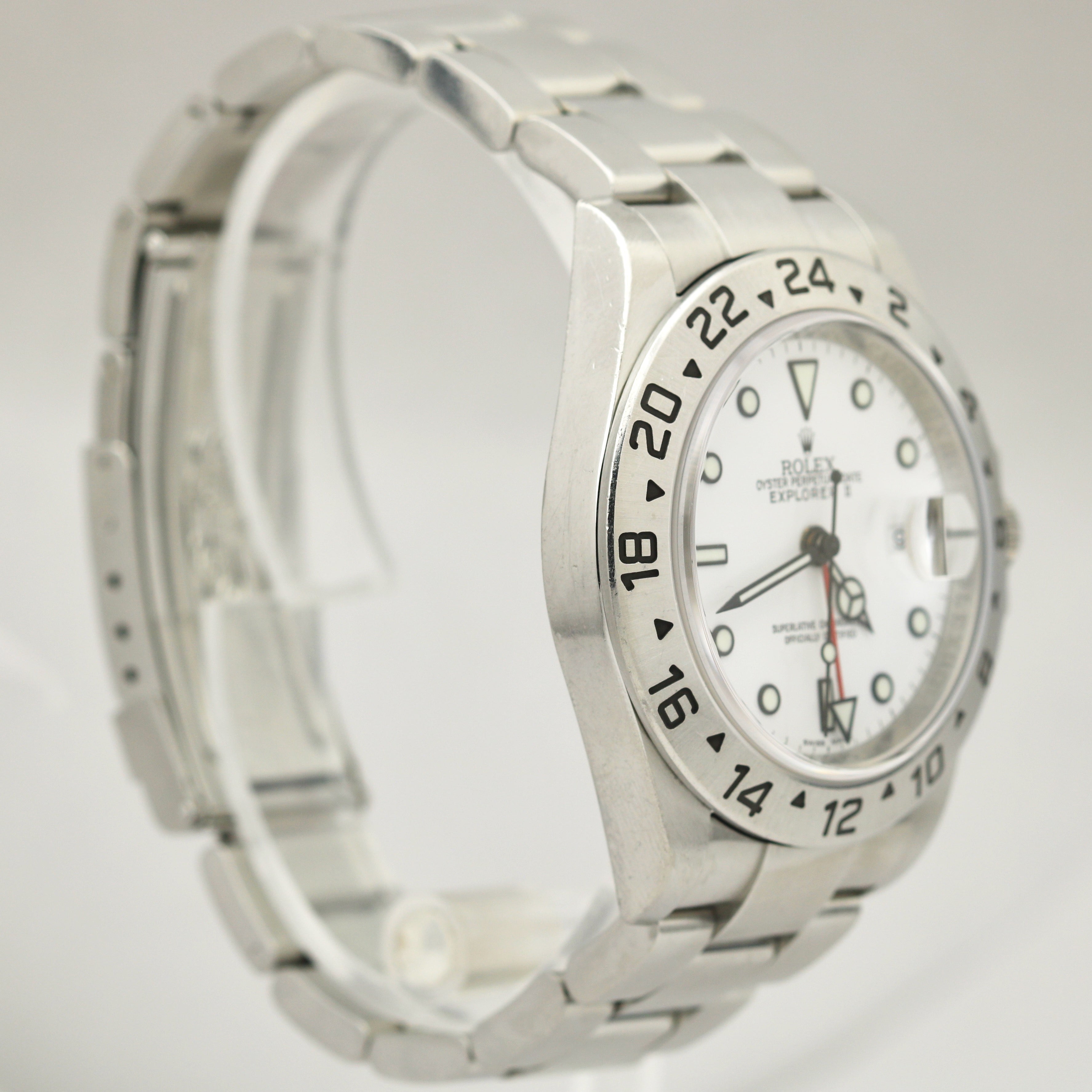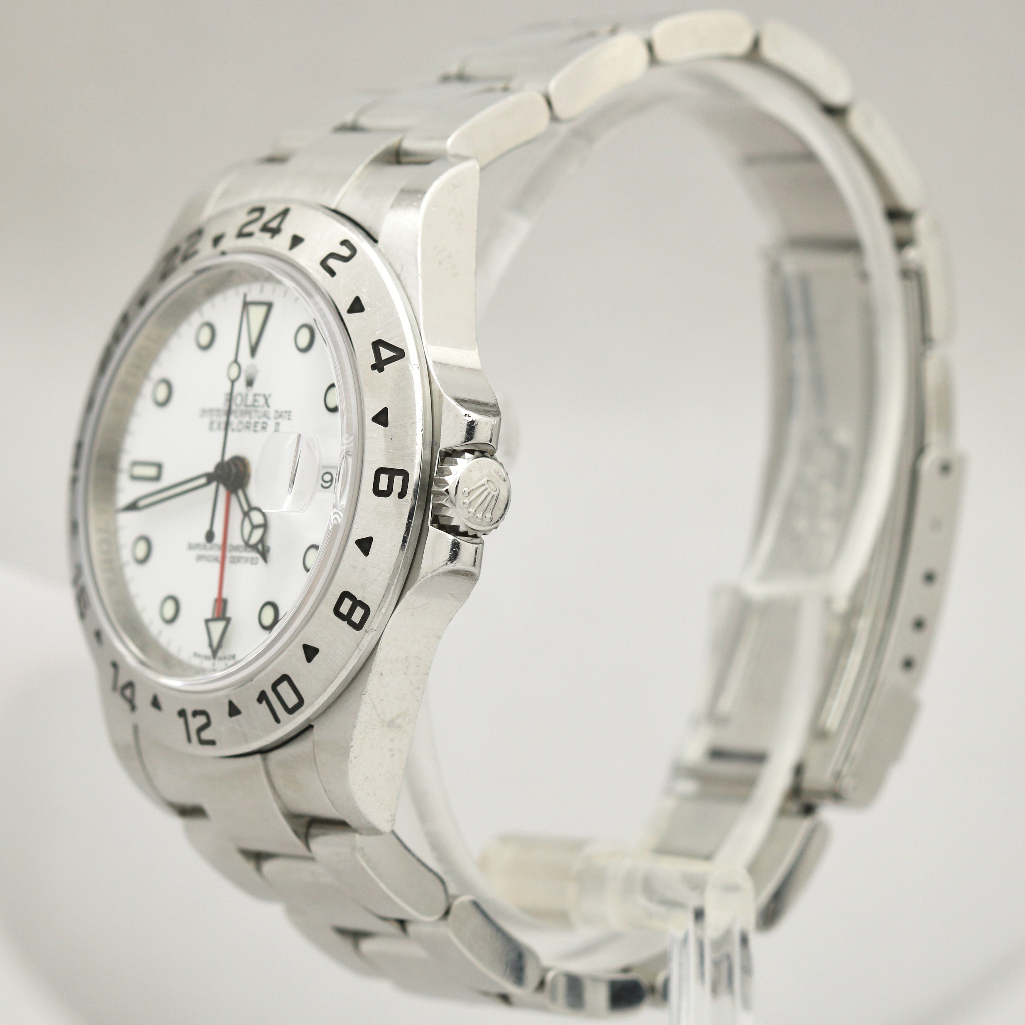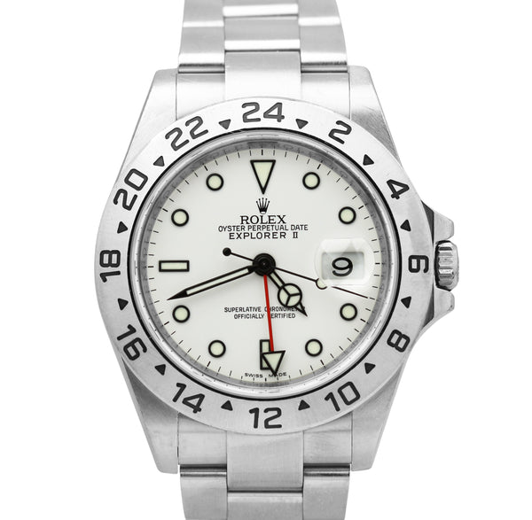 UNPOL. Rolex Explorer II Polar White NO HOLES 3186 Stainless Steel 40mm REHAUT 16570 Watch
