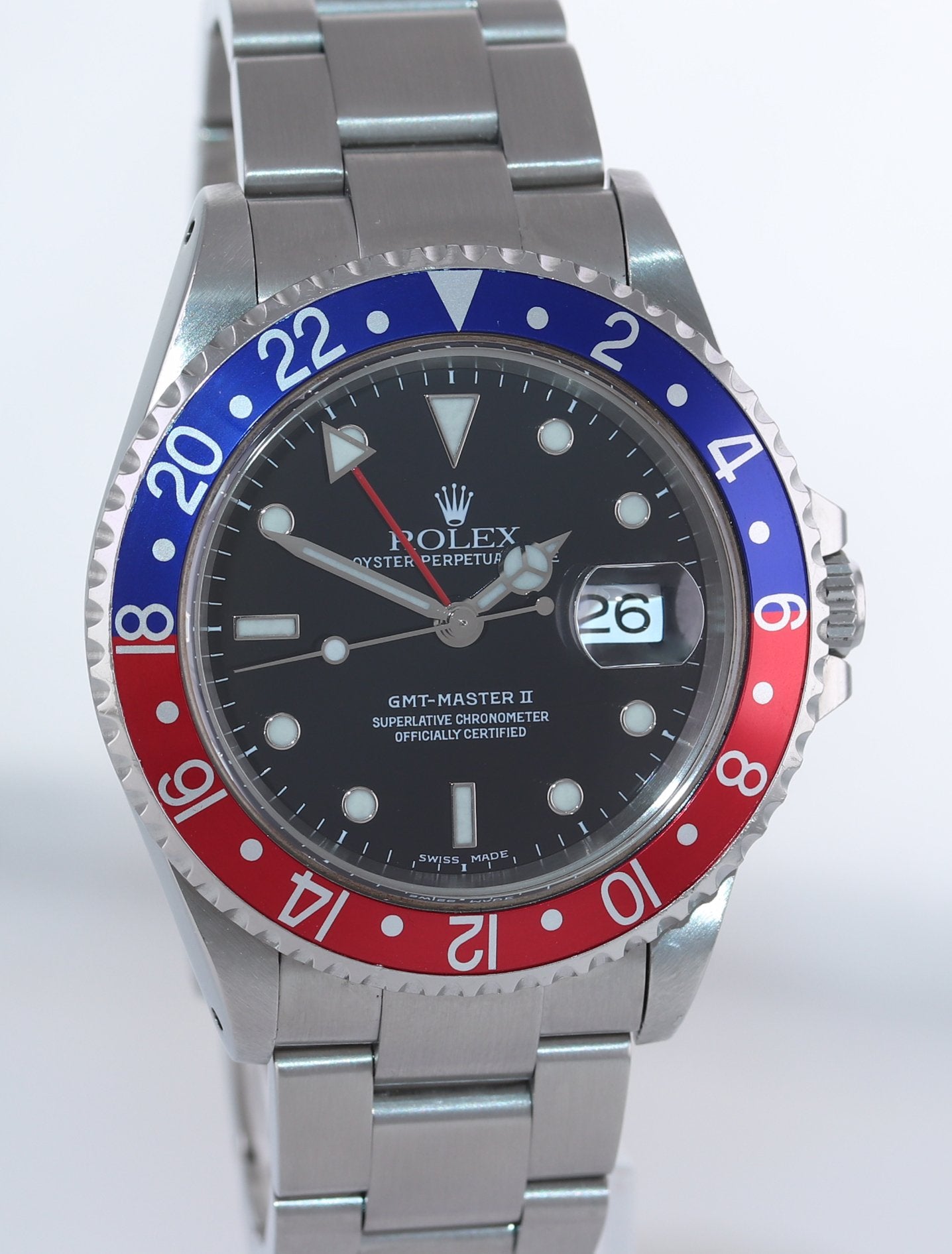 Unpolished Rolex GMT-Master II Pepsi Steel Blue Red 16710 Watch 40mm Watch SEL Box