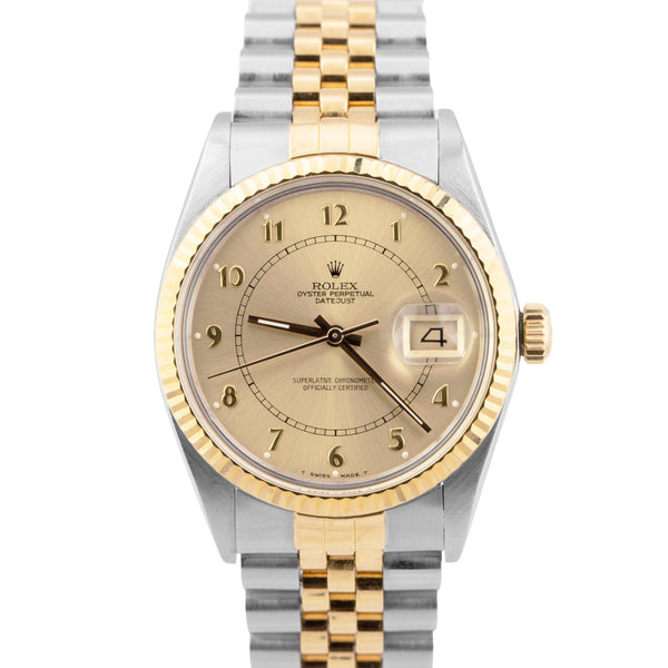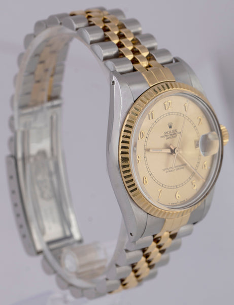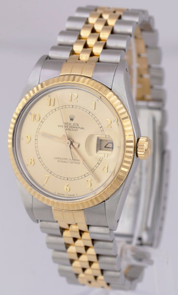 UNPOLISHED Rolex DateJust 36mm PAPERS Champagne BOILER GAUGE Two-Tone 16013 B+P
