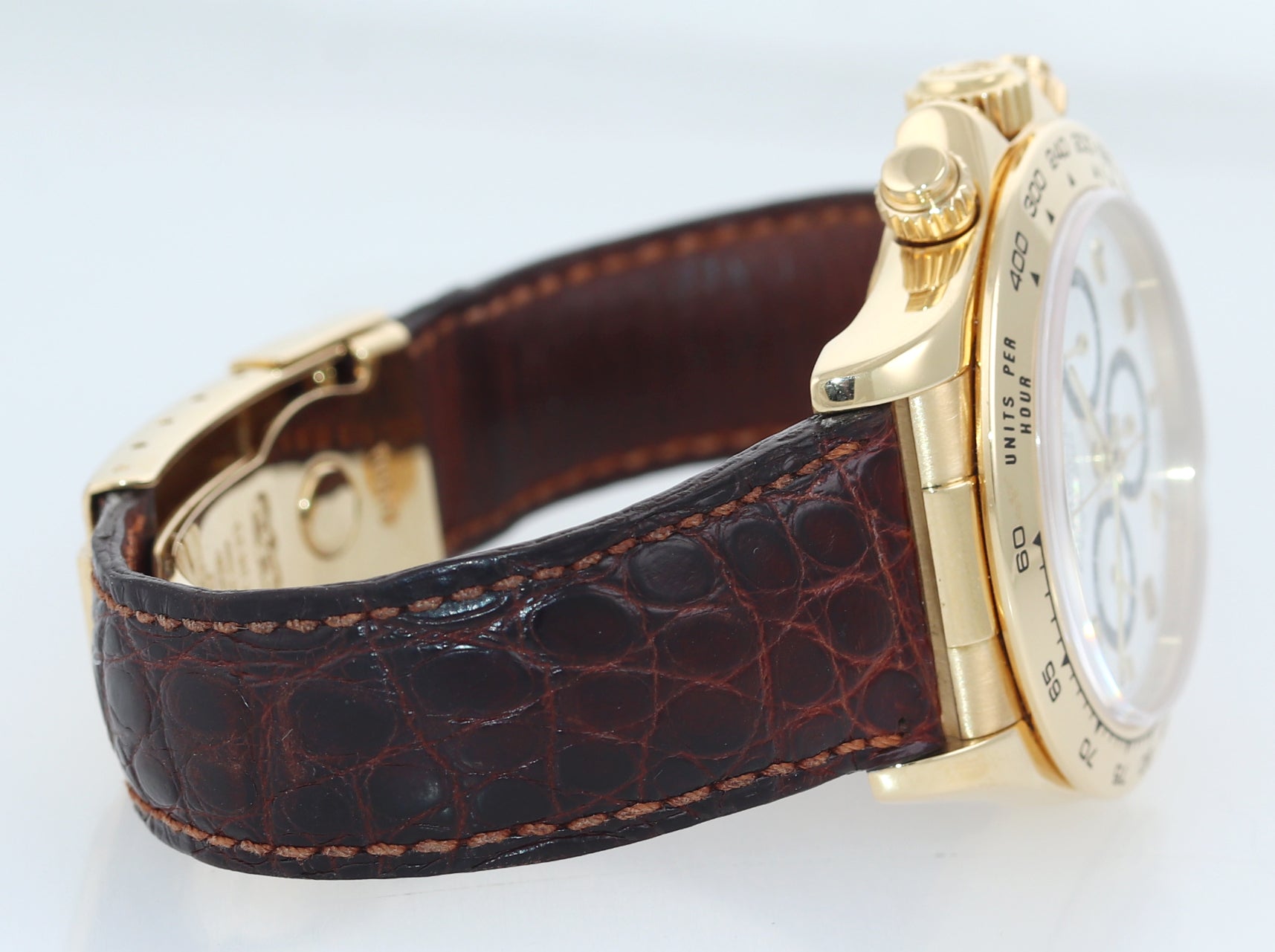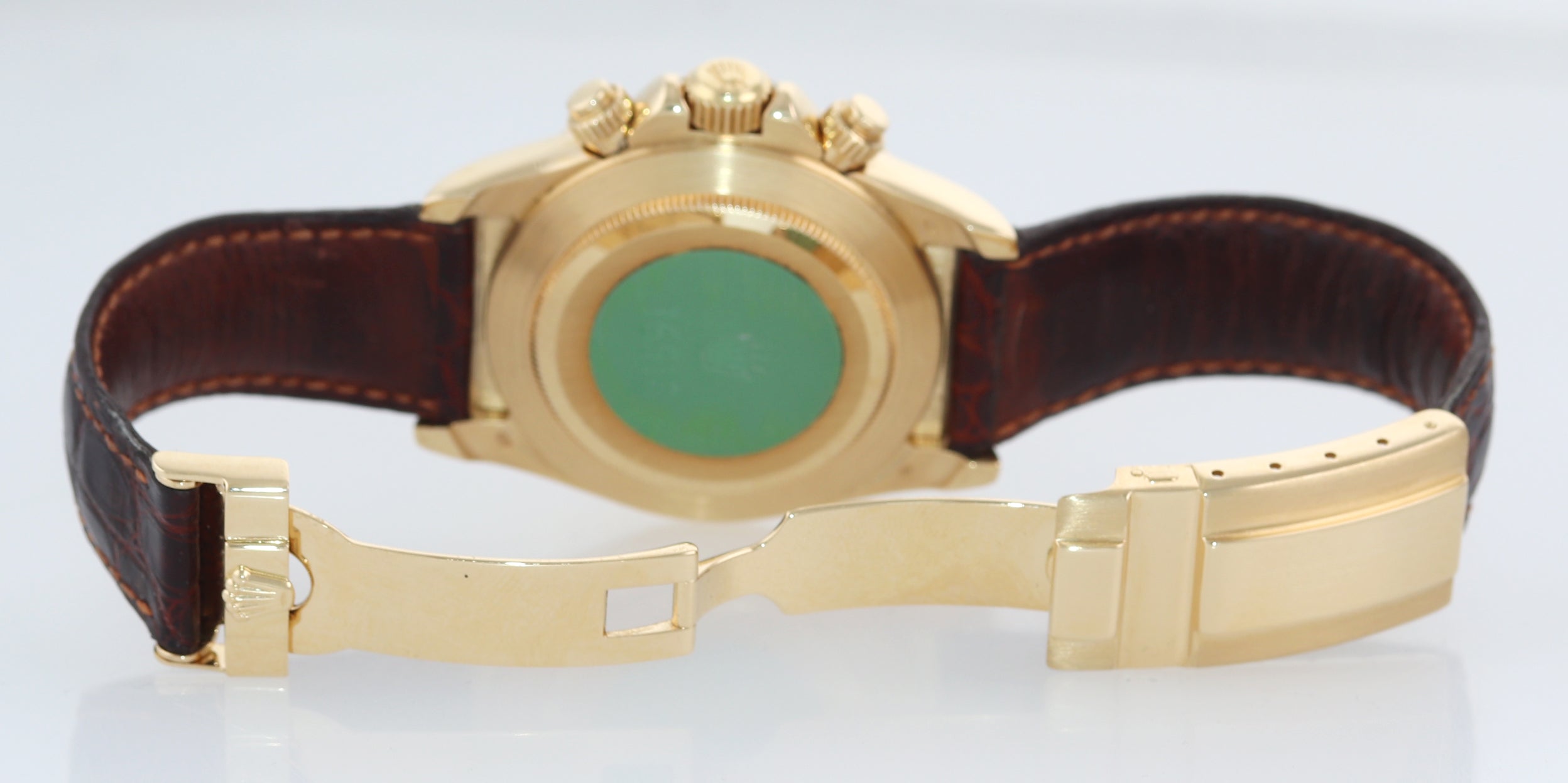 | Band | Original Rolex Genuine Brown Leather Strap with an 18K Yellow Gold Flip Lock Deployment Clasp. |