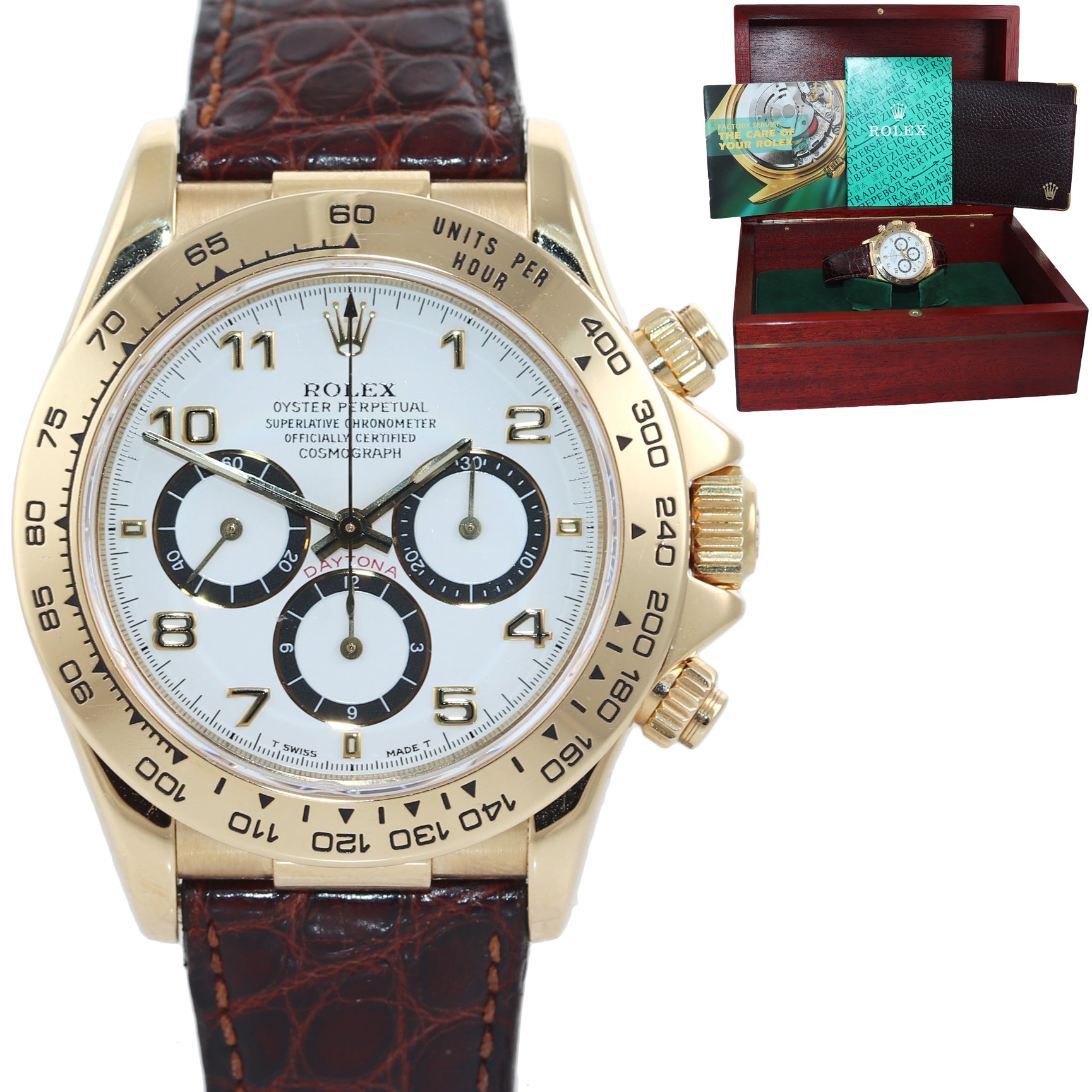 Unpolished Rolex Daytona Zenith Inverted 6 16518 White Arabic Dial 18k Yellow Gold Watch