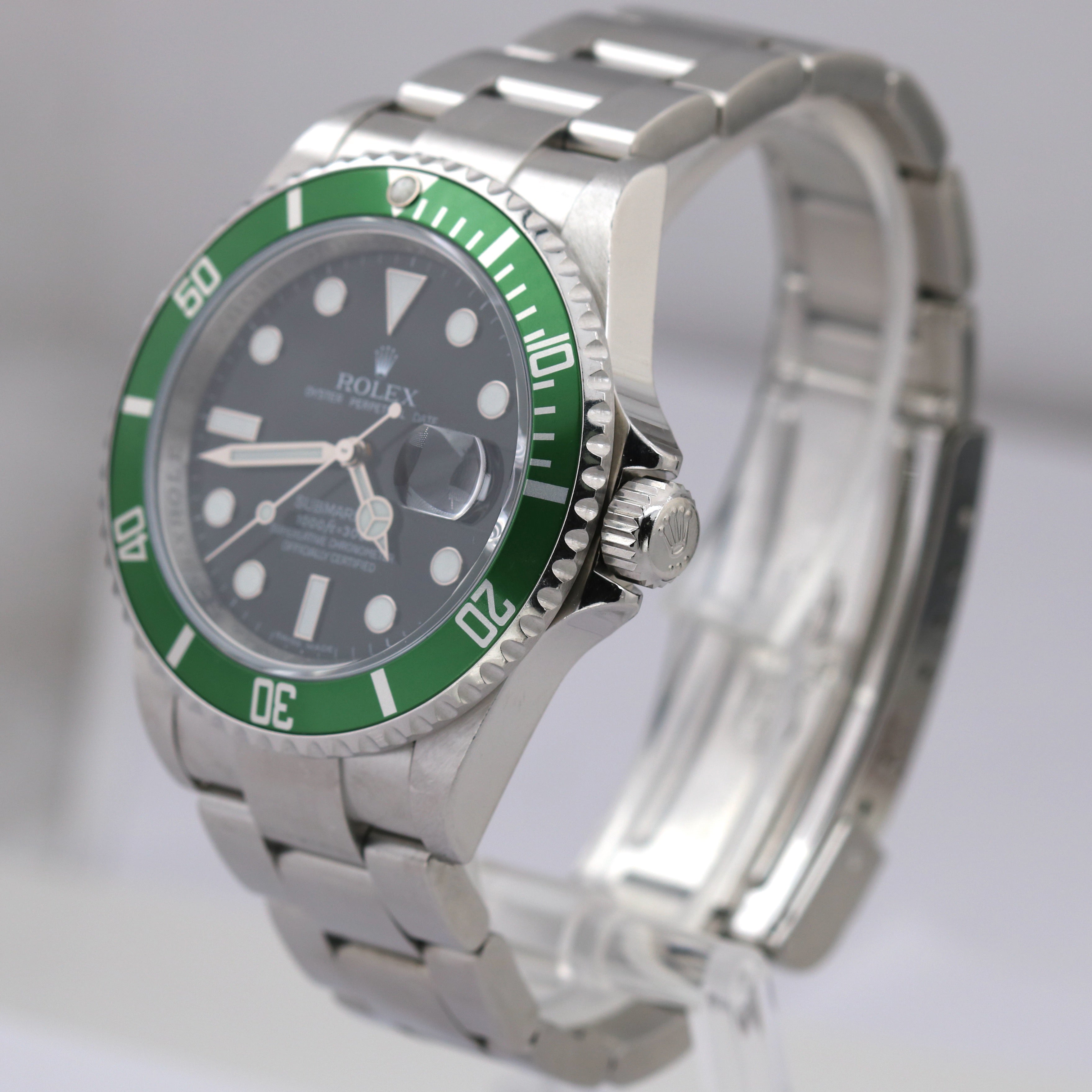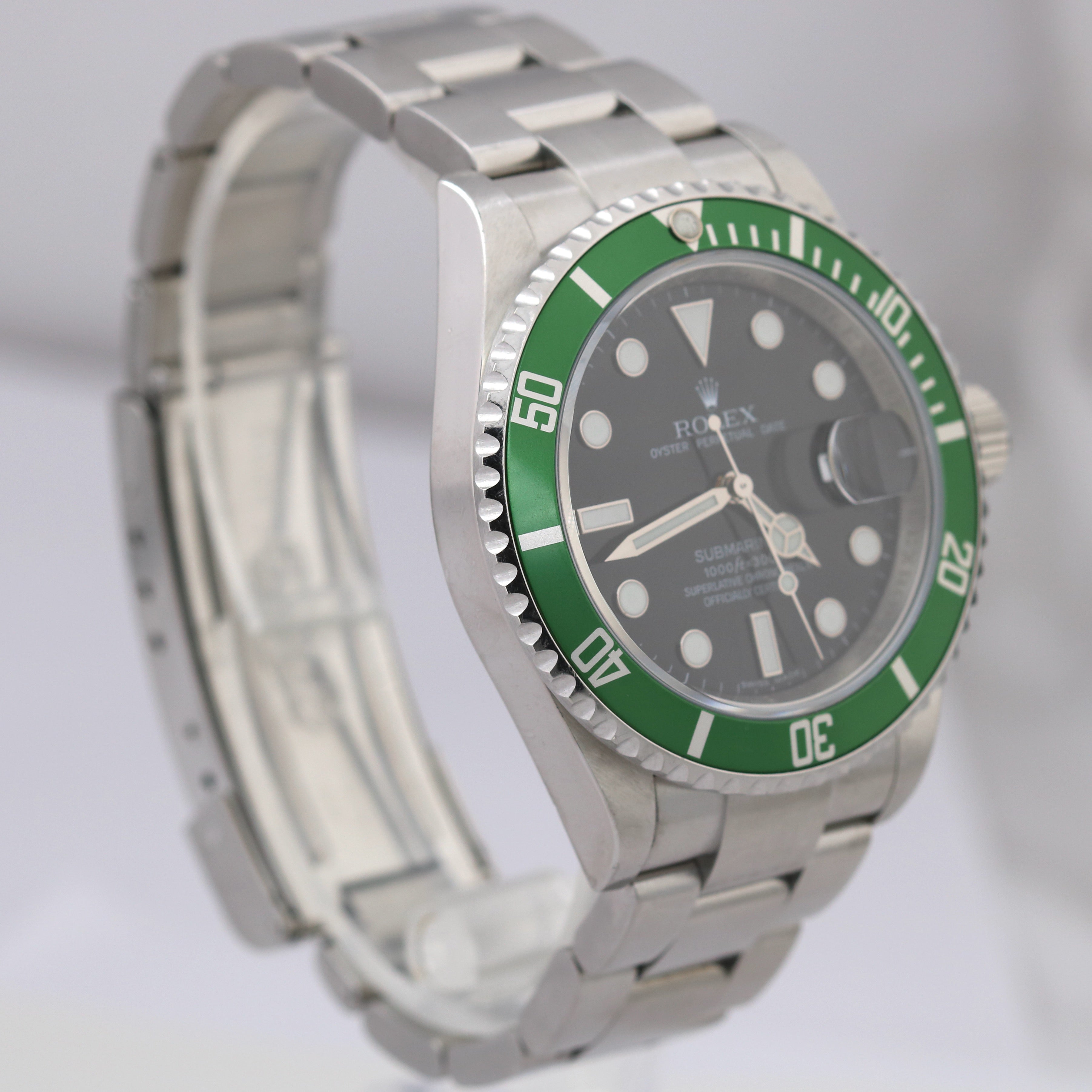 UNPOLISHED Rolex Submariner Date KERMIT Green Black REHAUT 40mm Steel 16610 LV