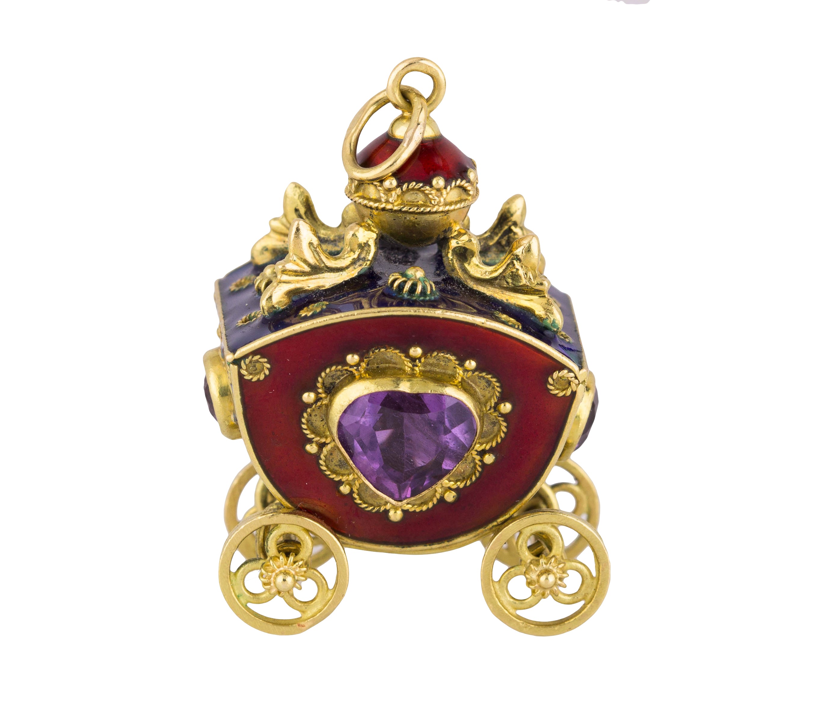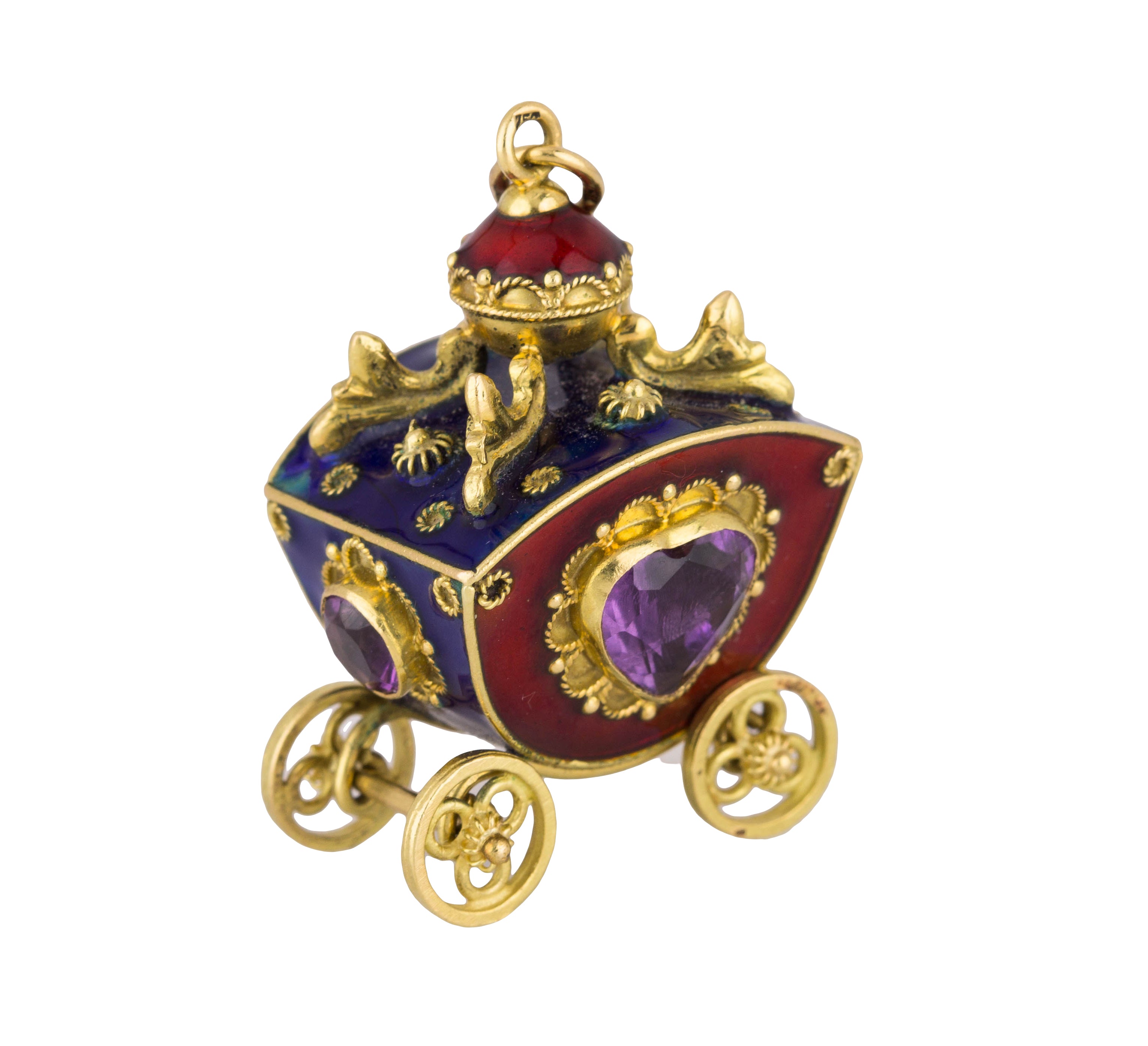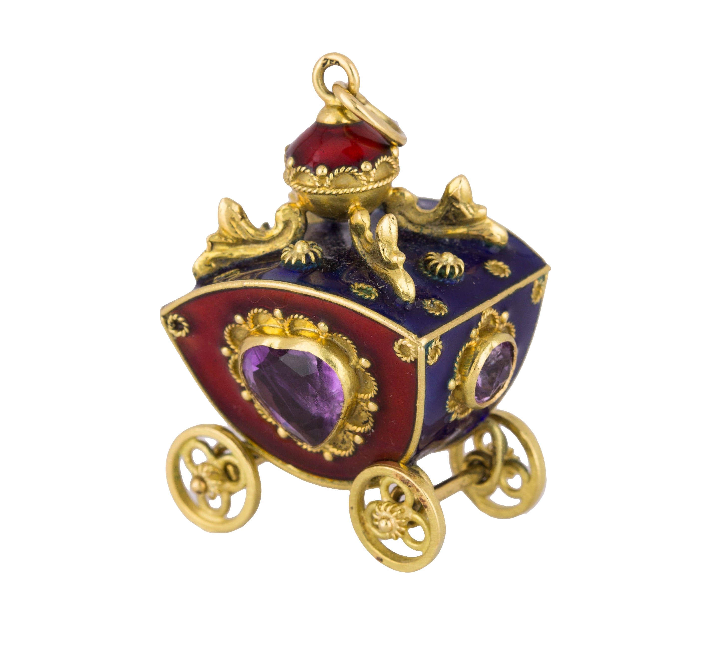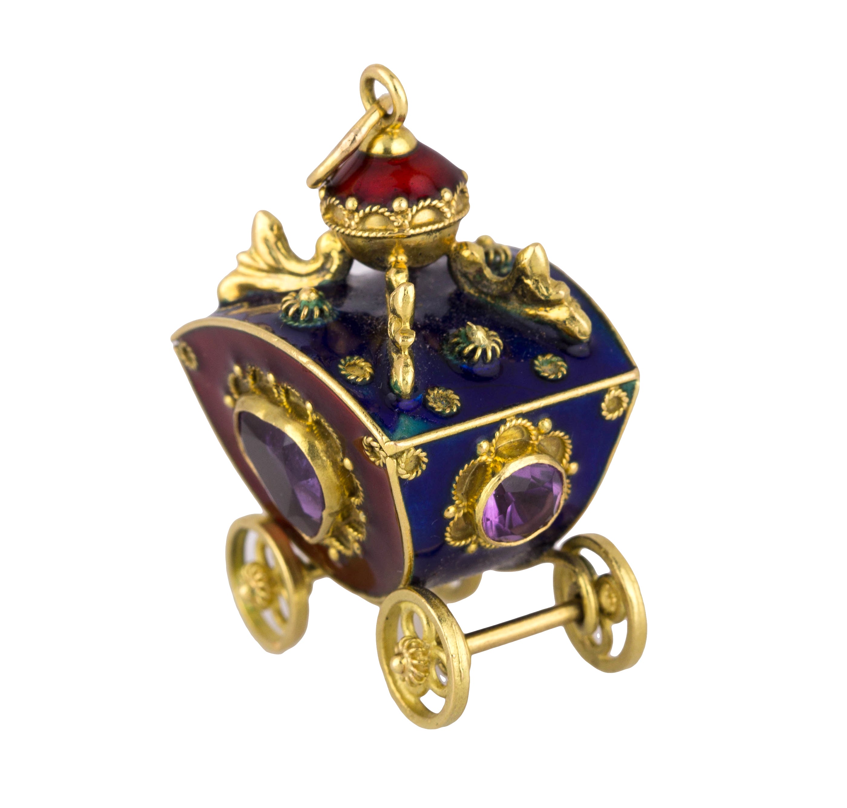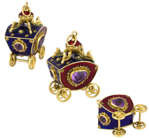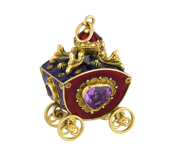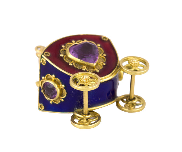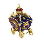 Victorian Etruscan 18K Yellow Gold Enamel Gemstone Carriage FOB Pendant Charm