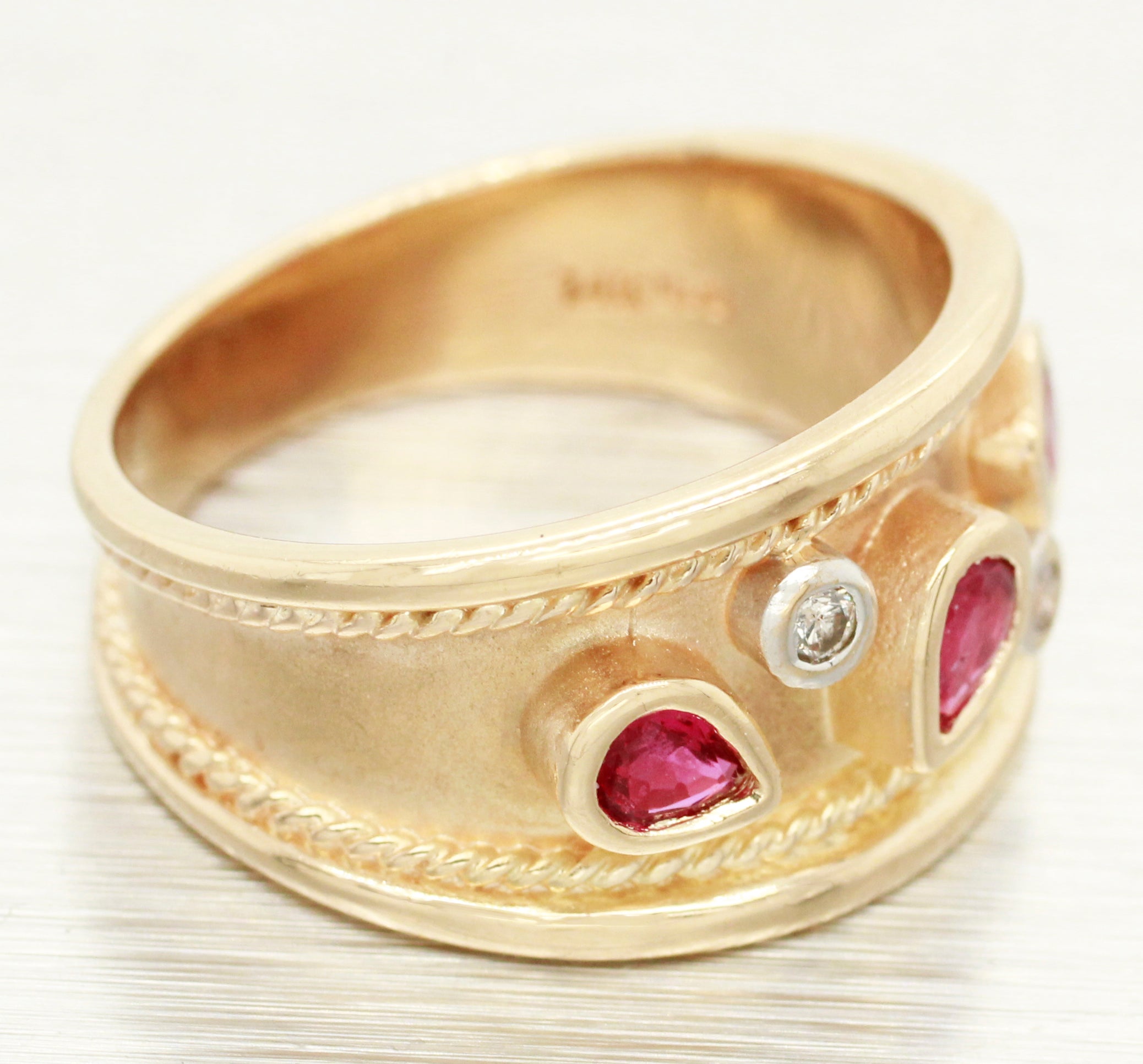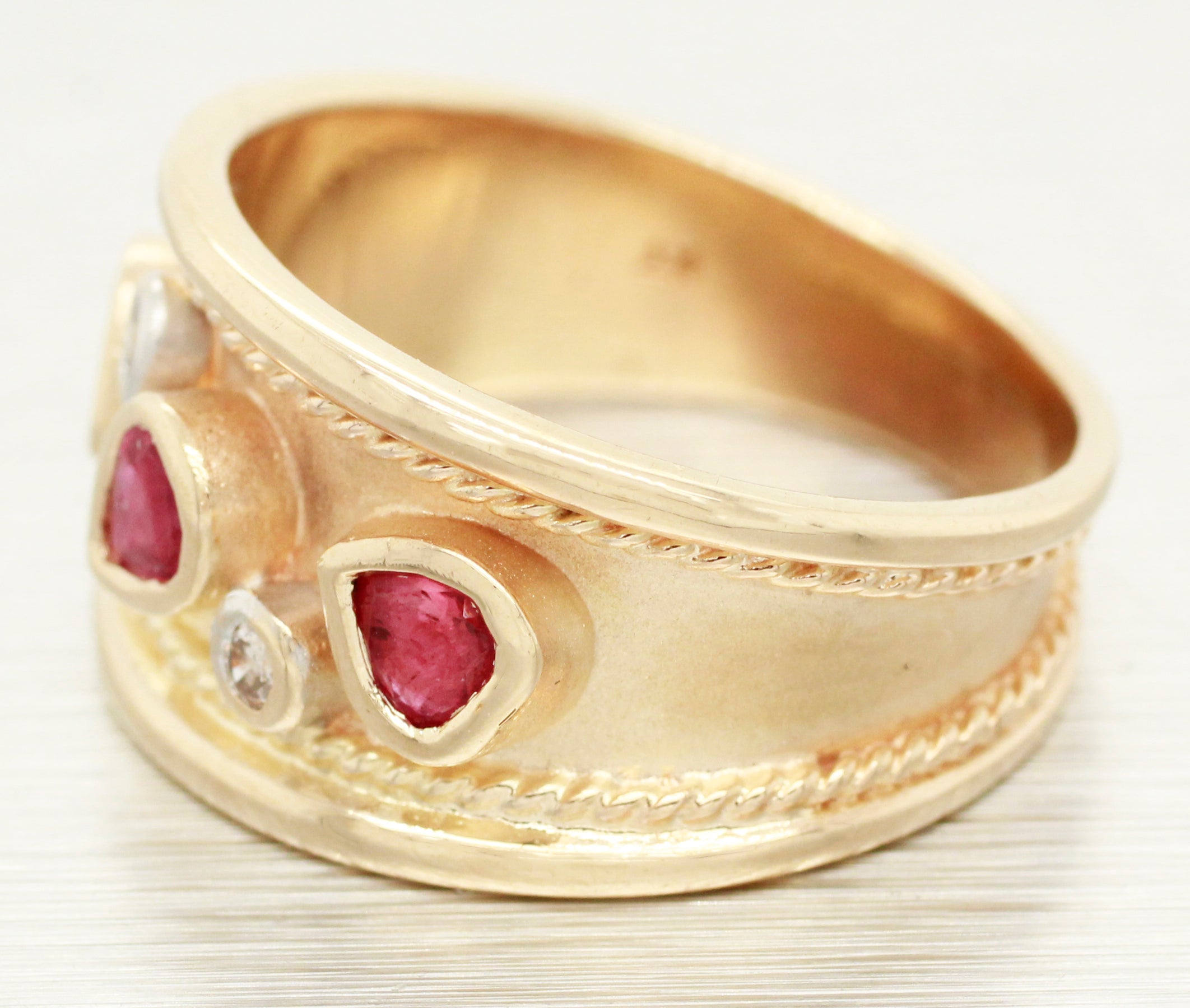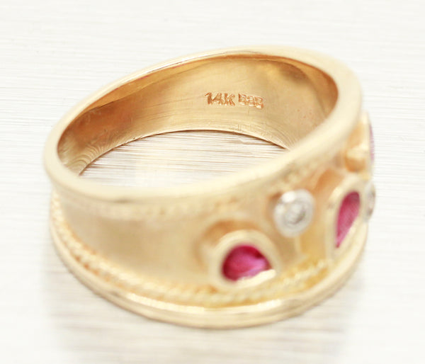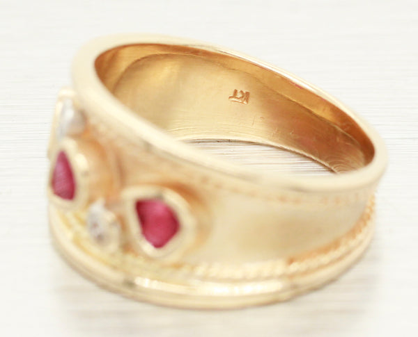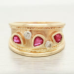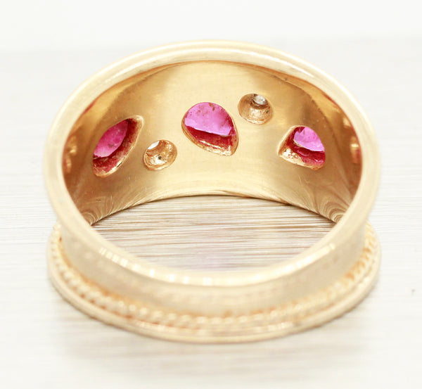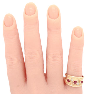 Vintage 0.40ctw Pear Cut Ruby & Diamond Band Ring - 14k Yellow Gold w/ Milgrain