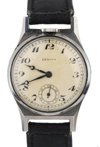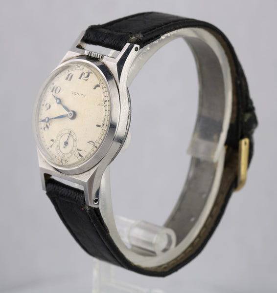 Vintage 1930s Zenith Top-Wind Tonneau Stainless Steel Silver 29mm Manual Watch