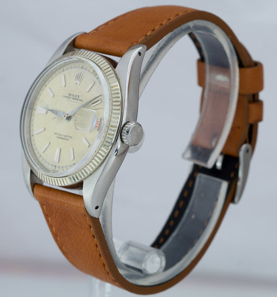 | Dial | Original Rolex Silver Patina Dial with DateJust written in RED and a roulette date wheel |