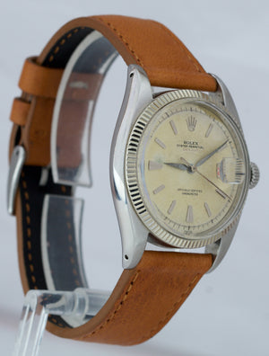 Vintage 1955 Rolex DateJust RED 36mm PATINA 6305 Bubbleback Stainless Watch