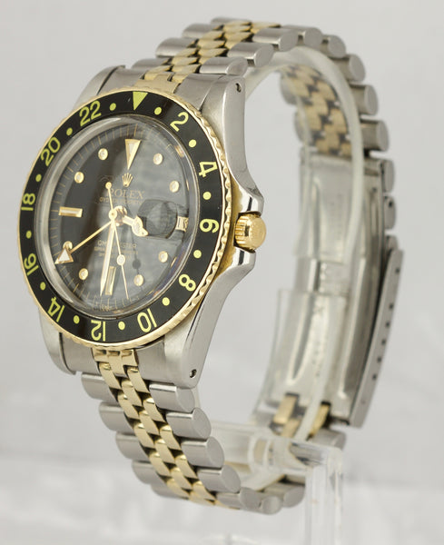 Vintage 1973 Rolex GMT-Master Black Nipple 1675 40mm Two Tone Gold Watch