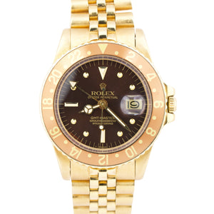 VINTAGE 1979 Rolex GMT-Master Brown ROOT BEER 18K Yellow Gold JUBILEE Watch 1675