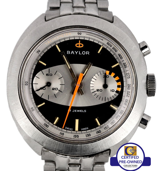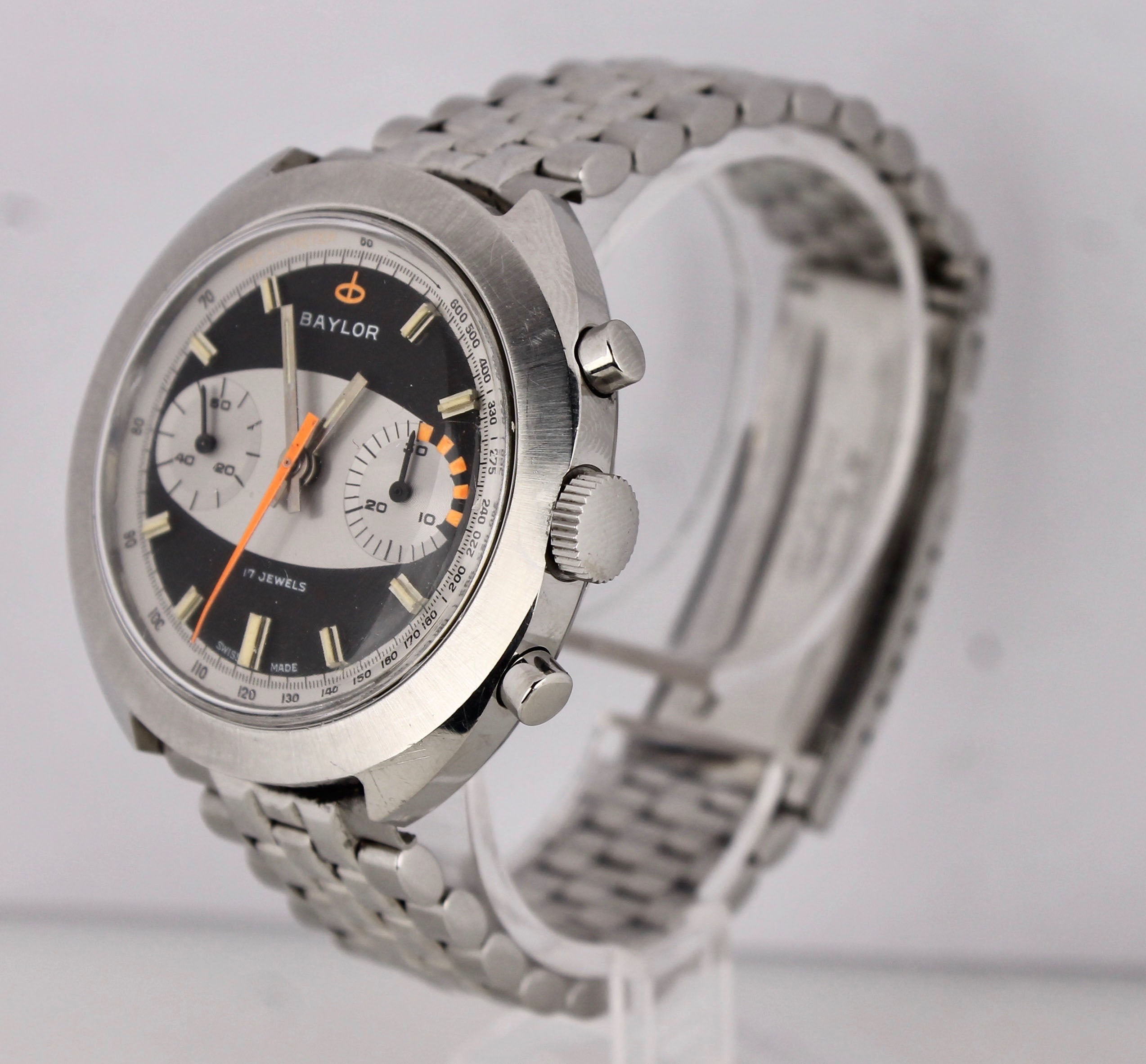 Vintage Baylor Landeron Datora Surfboard 39mm Racing Chronograph 149 Steel Watch