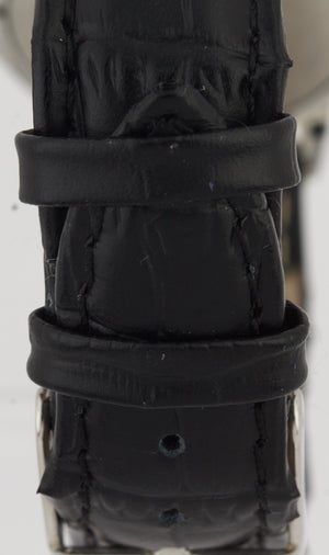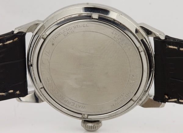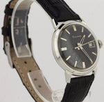 Vintage Bulova Stainless Steel Black Dial Date 34mm Engraved Leather Watch