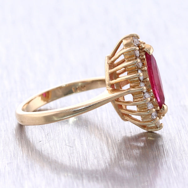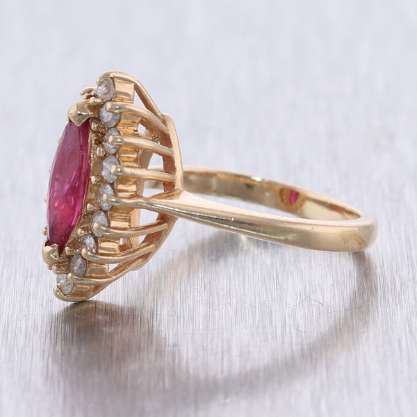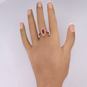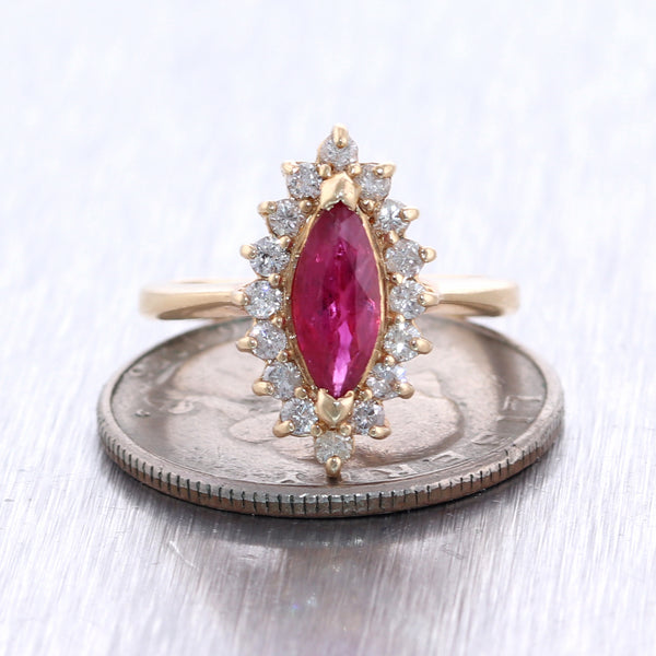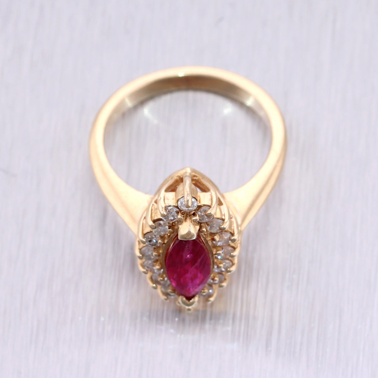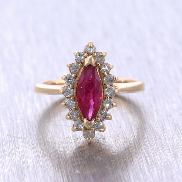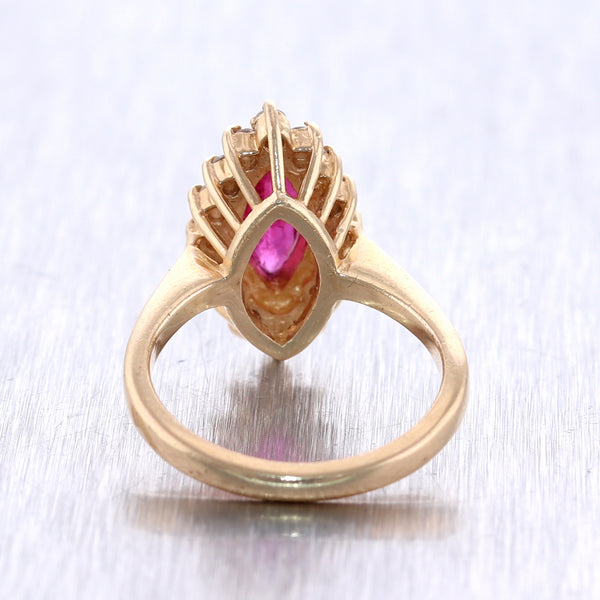 For your consideration, an authentic Vintage Estate 14k Yellow Gold 1.25ctw Pink Sapphire & Diamond Navette Ring. It will come in a lovely ring box for a perfect presentation and our unconditional 30 day money back return policy. C2