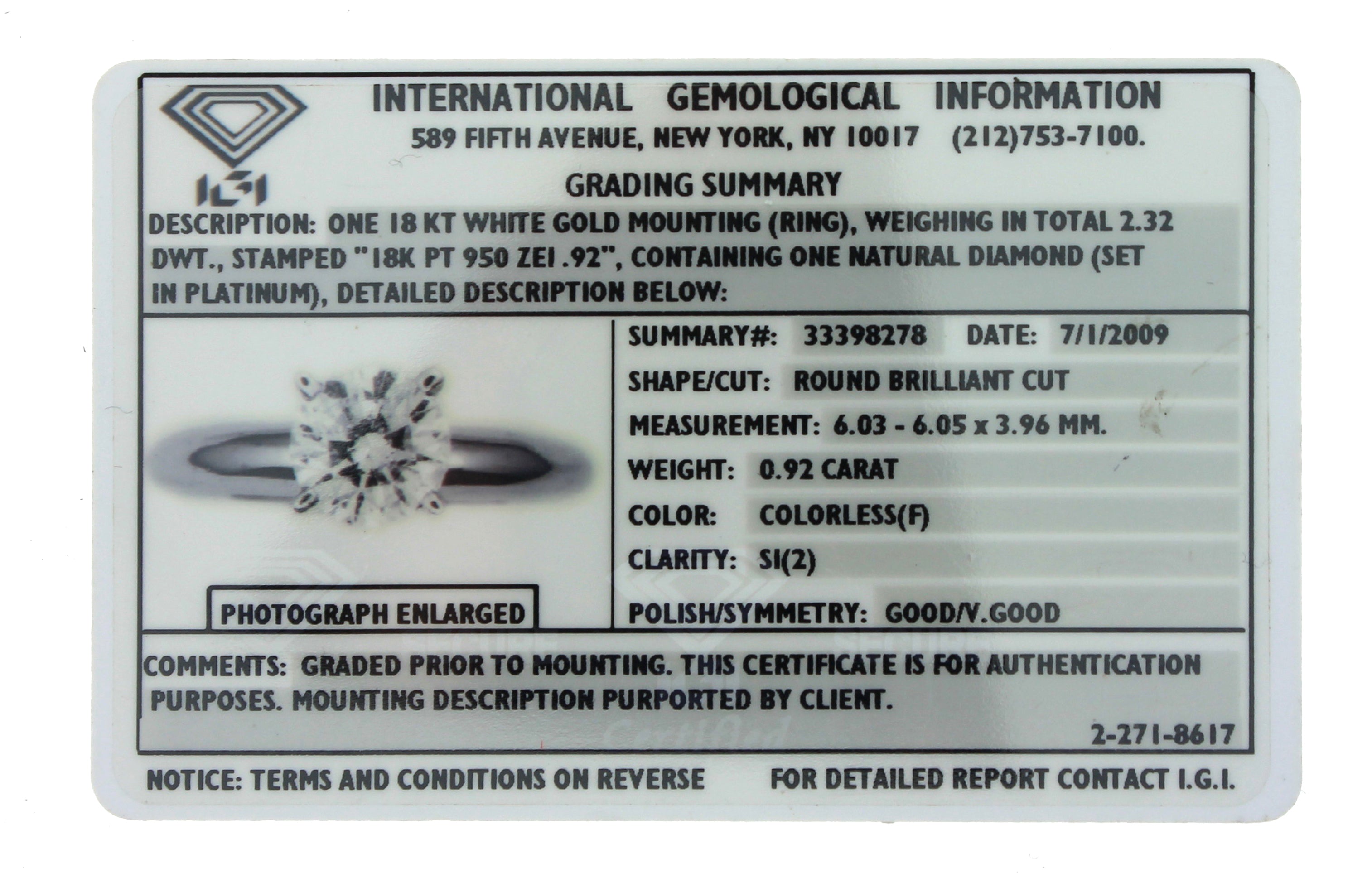 Yes, this item will include the IGI 'Grading Summary' as well as a Collector's Coins & Jewelry certificate of appraisal and authenticity as per buyer request.