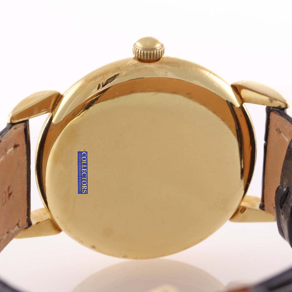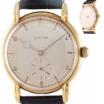 Vintage Glycine 18k Yellow Gold 34mm Manual Wind Silver Arabic Stick Watch A9