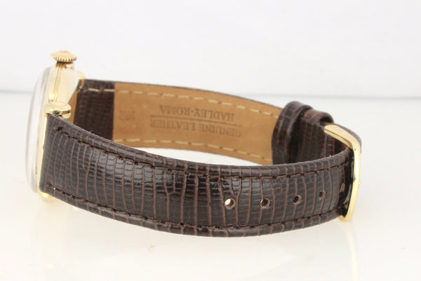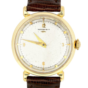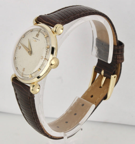 Vintage Hamilton Tiffany & Co. Silver 30mm 14K Yellow Gold Manual Leather Watch