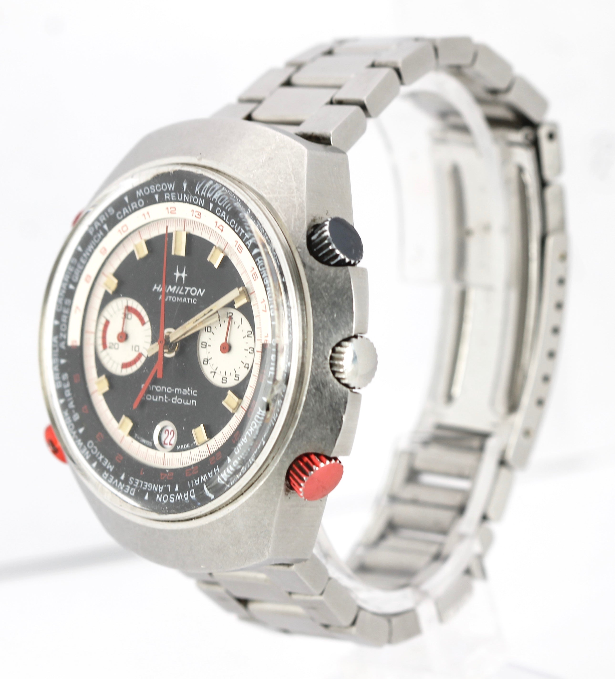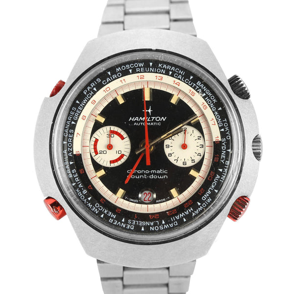 RARE Vintage Hamilton Count-Down GMT Chrono-Matic 141001-3 48mm Black Watch