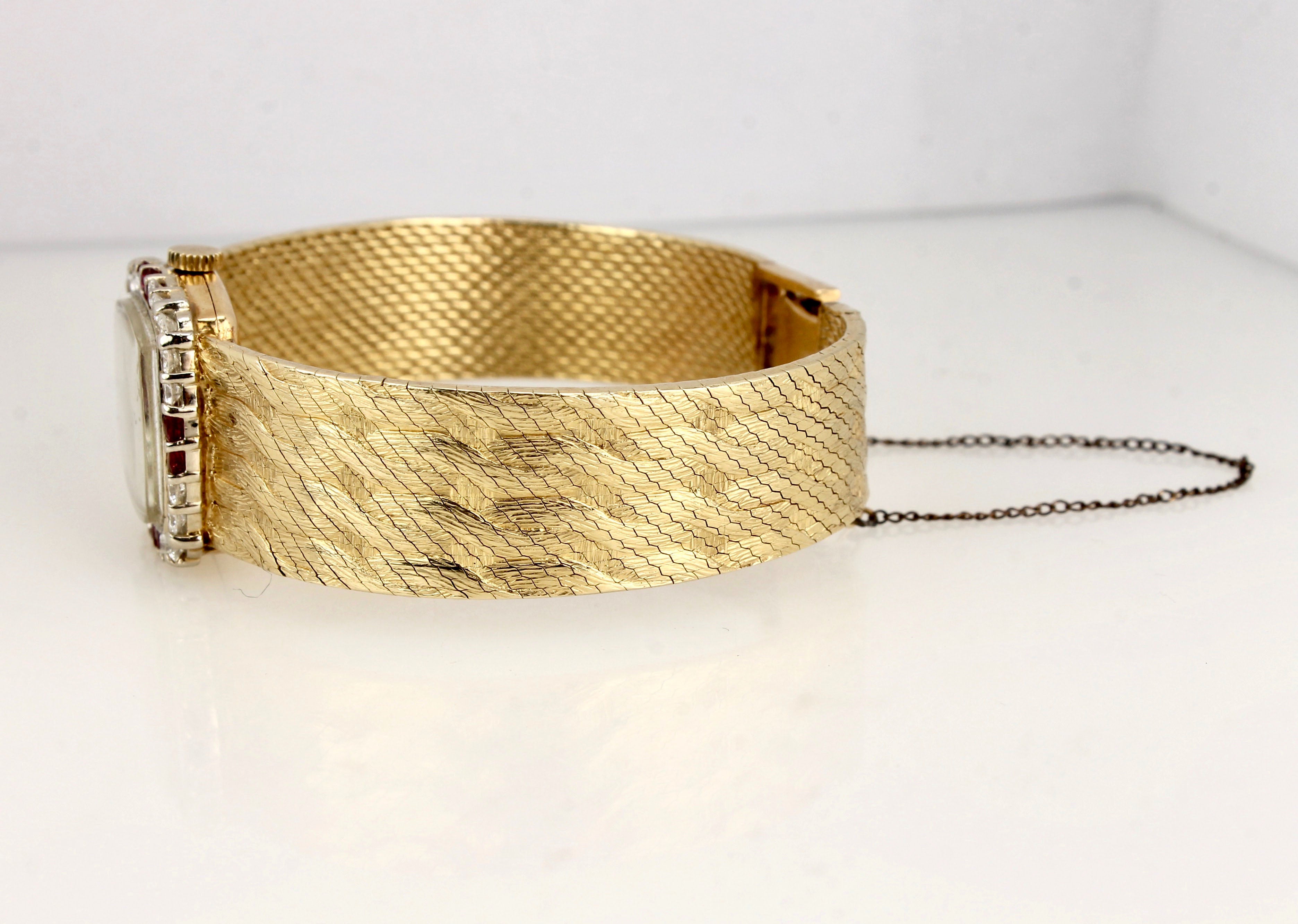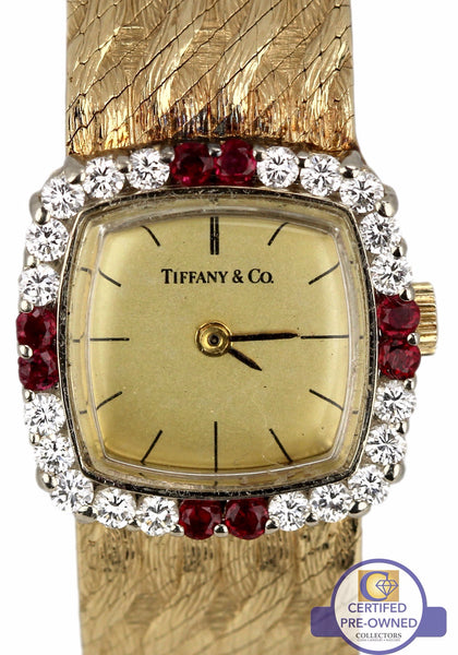 Vintage Ladies Authentic Tiffany & Co. 14K Yellow Gold Ruby Diamond Bezel Watch