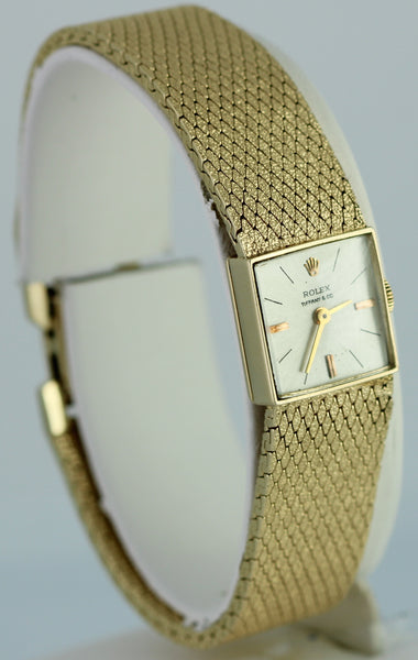 Vintage Ladies Rolex Cocktail 14K Yellow Gold 15mm Tiffany & Co Dial