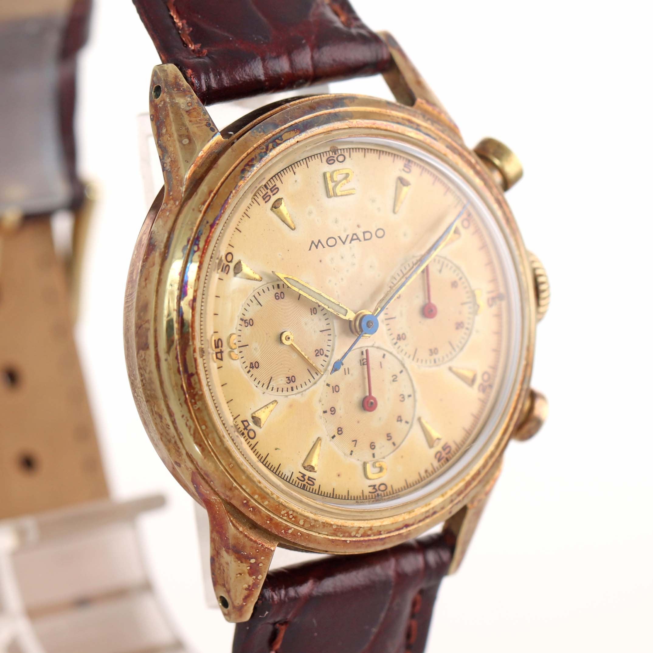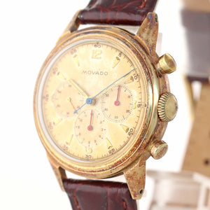 Vintage Movado 95M Solid 18k Yellow Gold Manual 35mm Patina Chronograph Watch