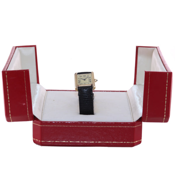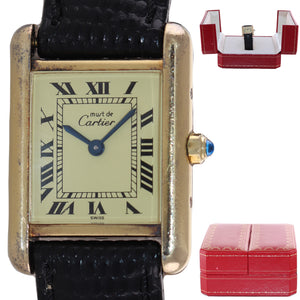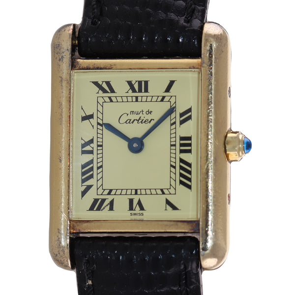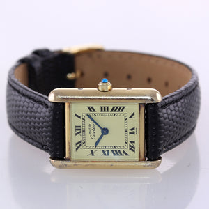 Vintage Must de Cartier Tank Vermeil Gold Silver Roman 21mm Quartz Watch