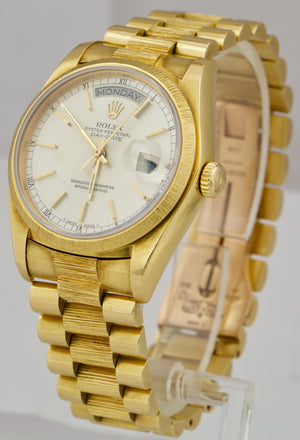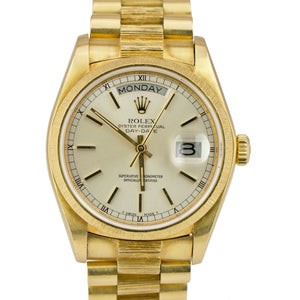 Vintage Rolex Day-Date President 36mm Silver Bark Bracelet Yellow Gold 18078