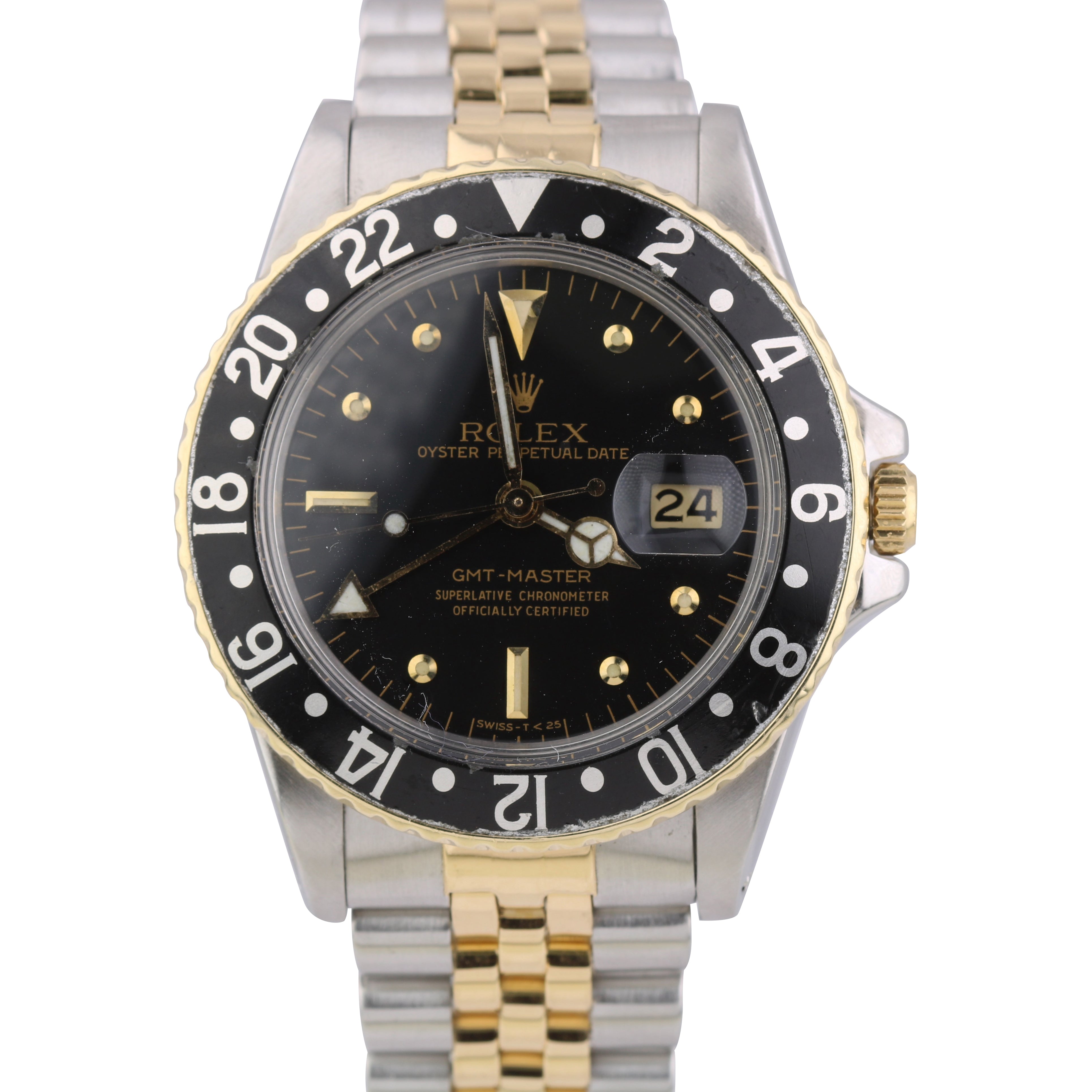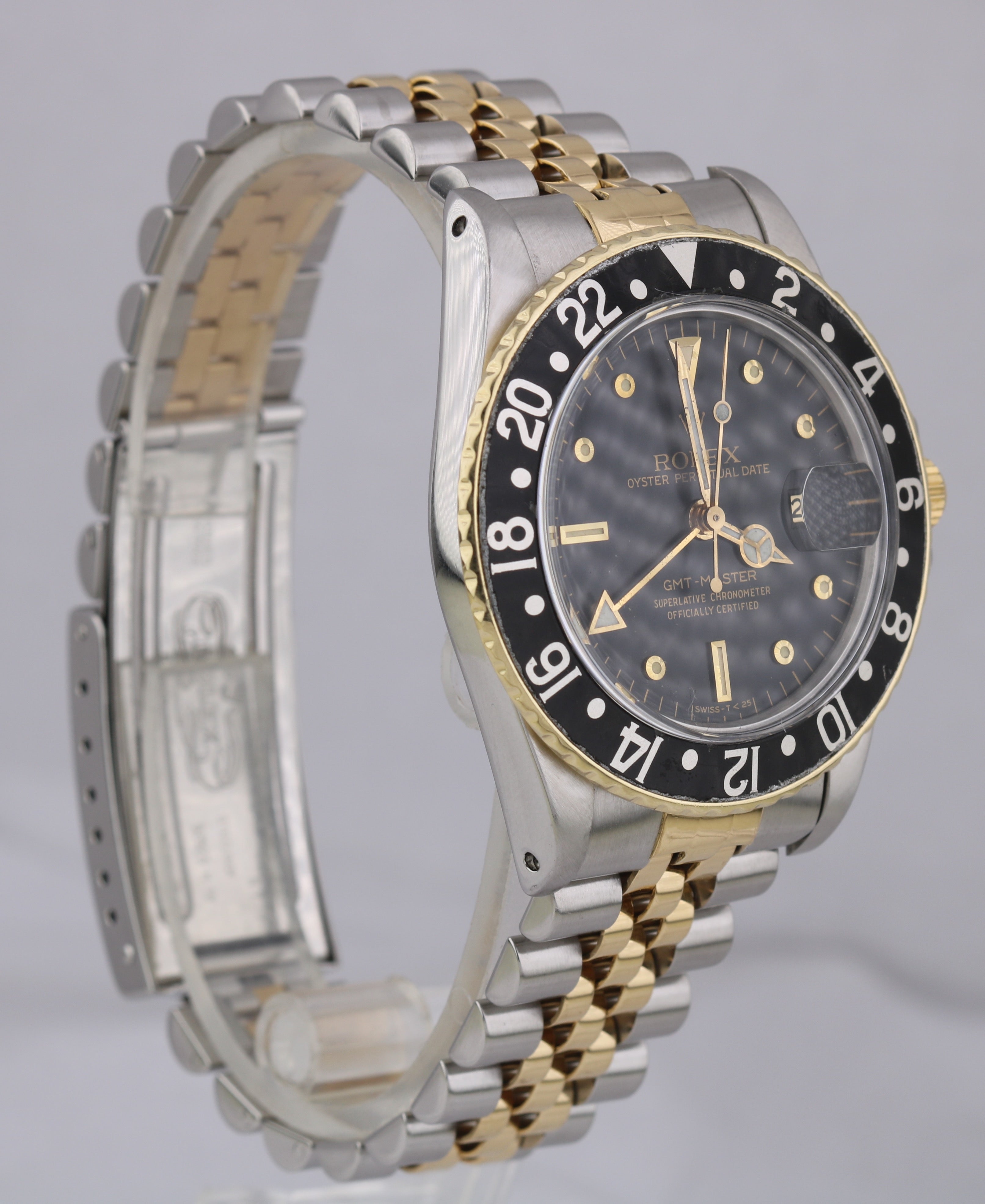 Vintage 1987 Rolex GMT-Master Black 16753 18K Two Tone Jubilee Watch