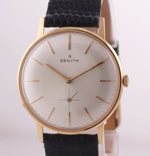 Vintage Zenith Solid 18k Yellow Gold 34mm Manual Wind Silver Stick Watch