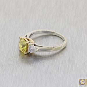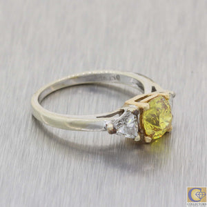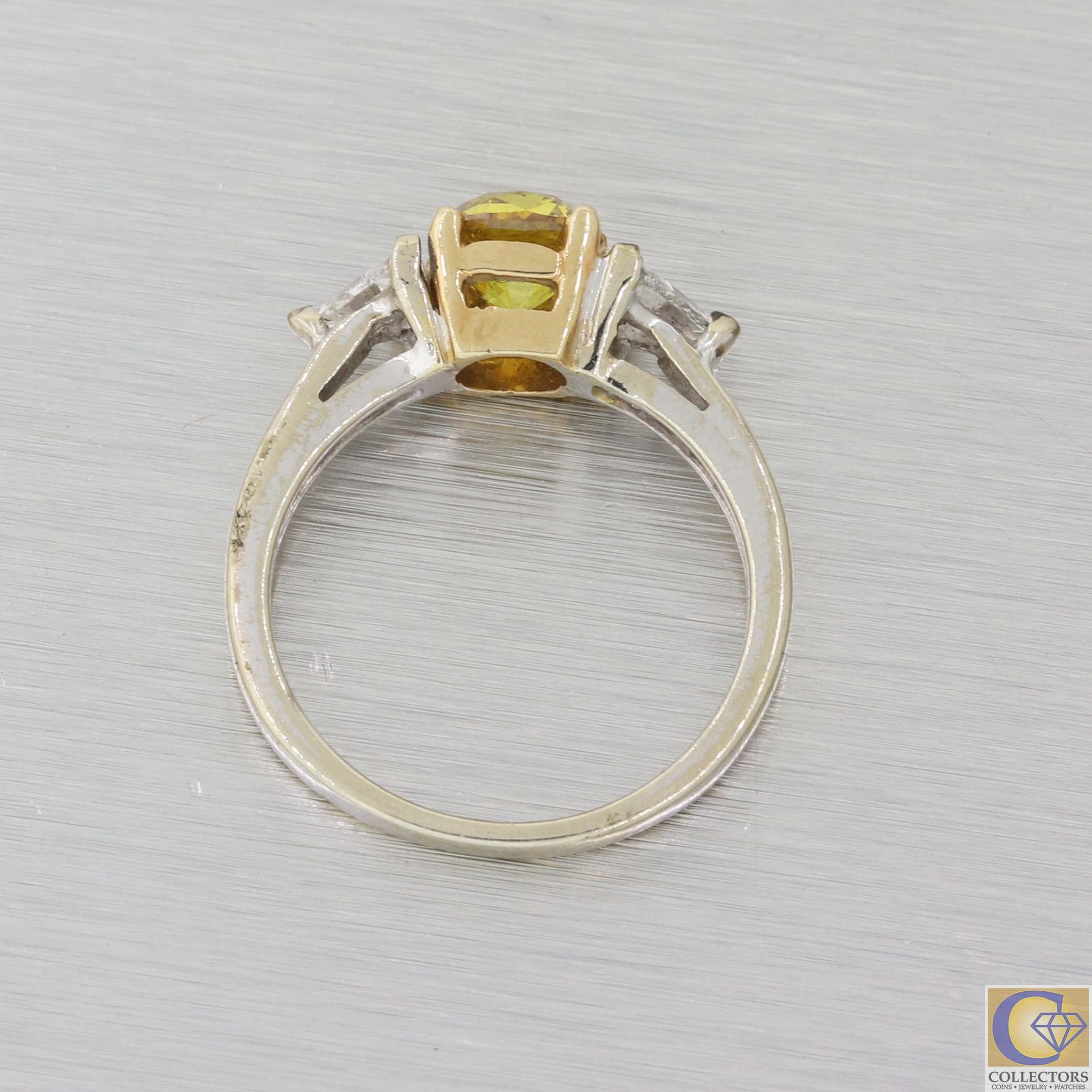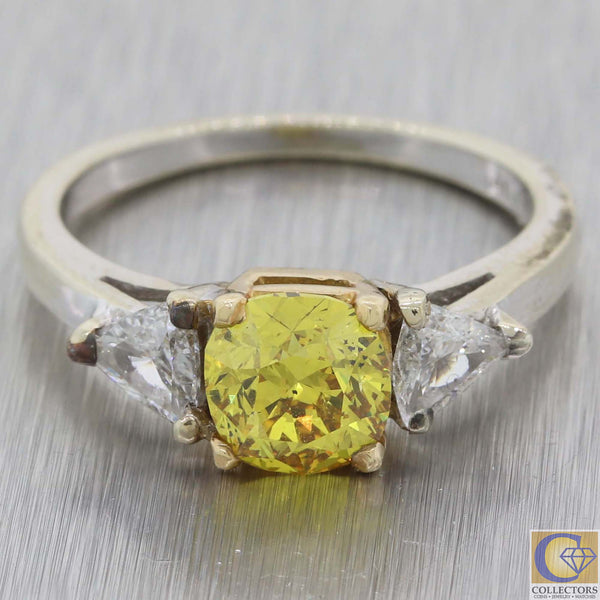 This is a beautiful Vtg. Estate 14k White Gold 1.86ctw Fancy Yellow Trillion Diamond Engagement Ring . It will come in a lovely ring box for a perfect presentation and our unconditional 30 day money back return policy.