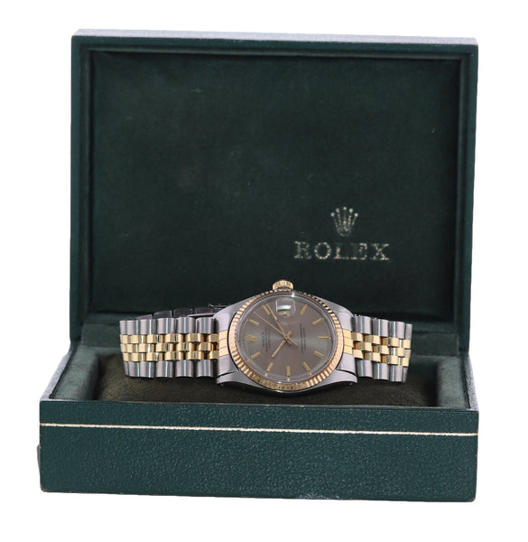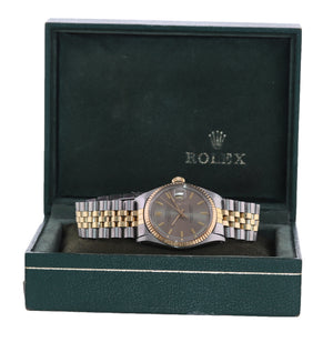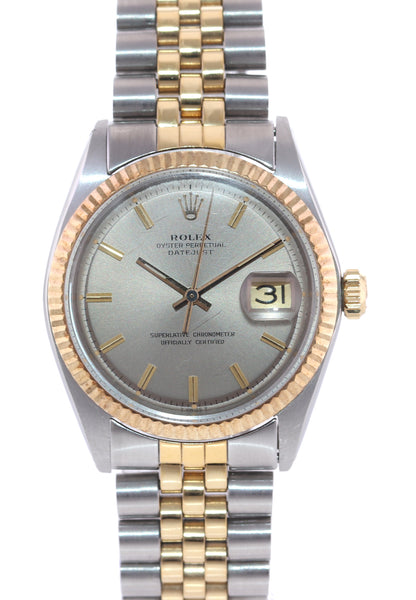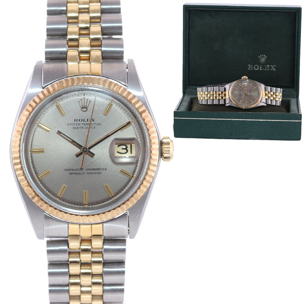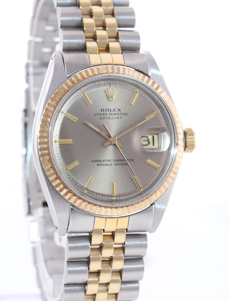 VTG Rolex DateJust 1601 Grey Pie Pan Dial Two Tone Gold Steel Jubilee Watch