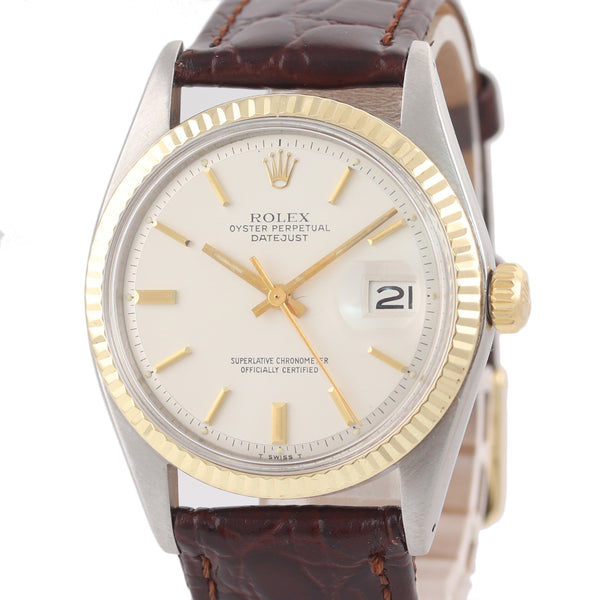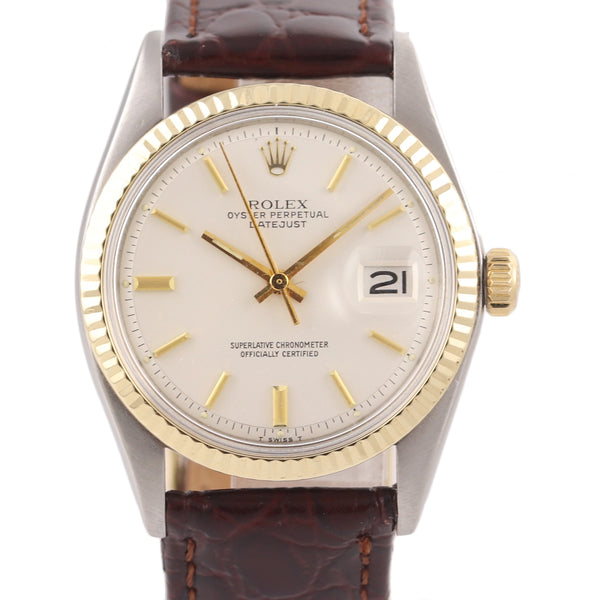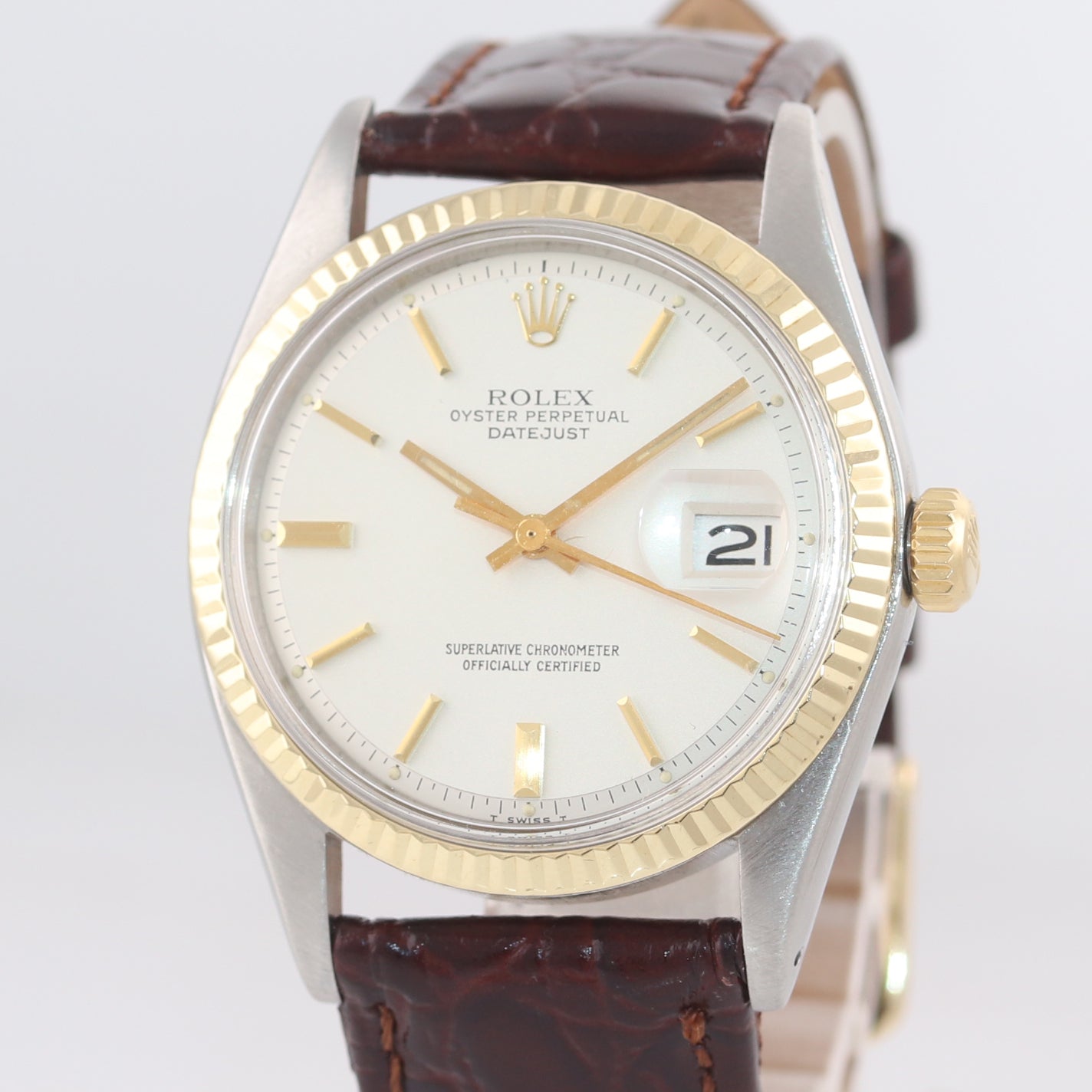 2019 SERVICE Rolex DateJust 1601 Yellow Gold Bezel Steel Pie Pan 36mm Watch