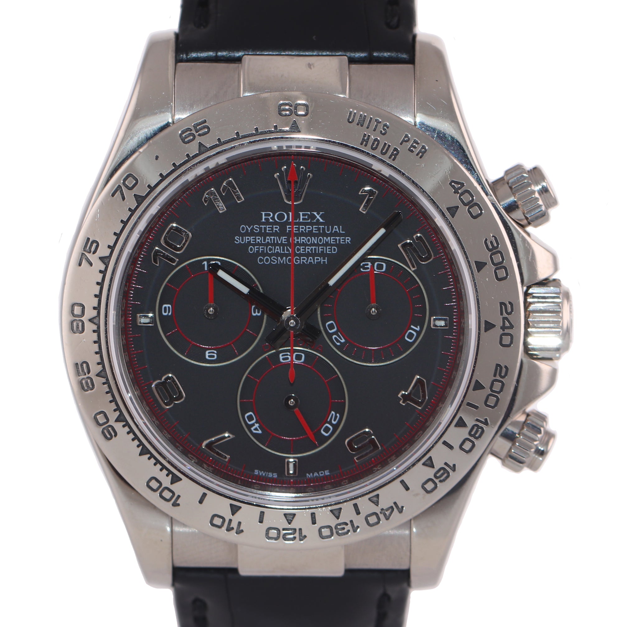 | Dial | Original Rolex Black Racing Chronograph Dial with red accents |