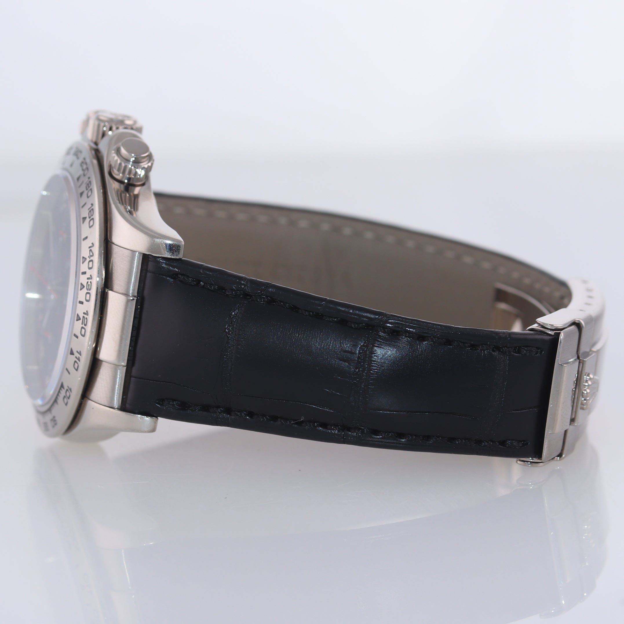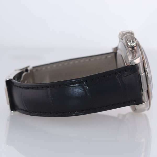 | Band | Original Rolex Genuine Brand New Black Alligator Strap with an Original 18K White Gold Flip Lock Deployment Clasp. |