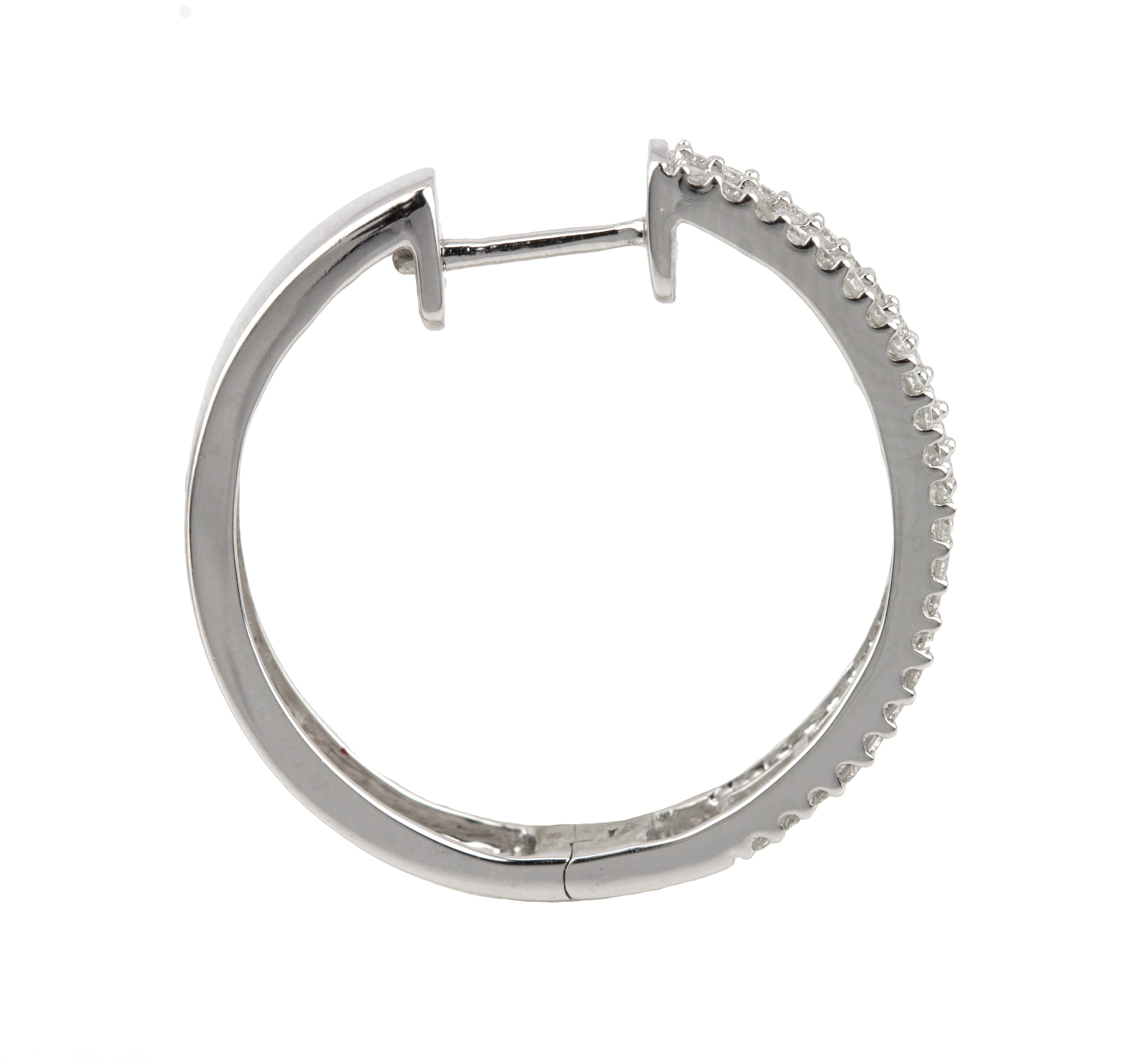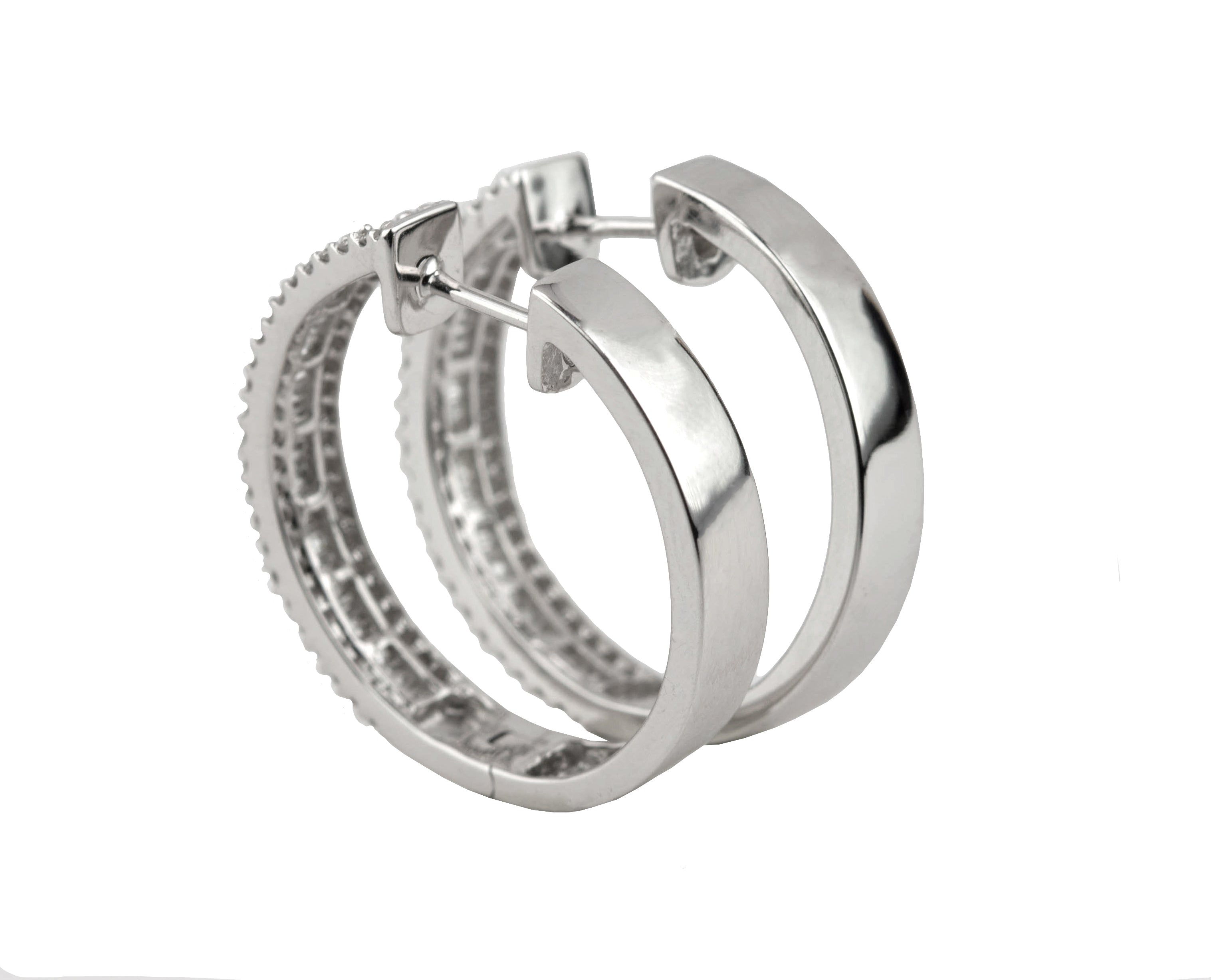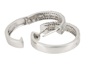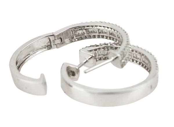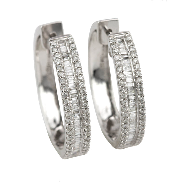 Womens Modern 14K 585 White Gold 1.62ctw Round & Baguette Diamond Hoop Earrings