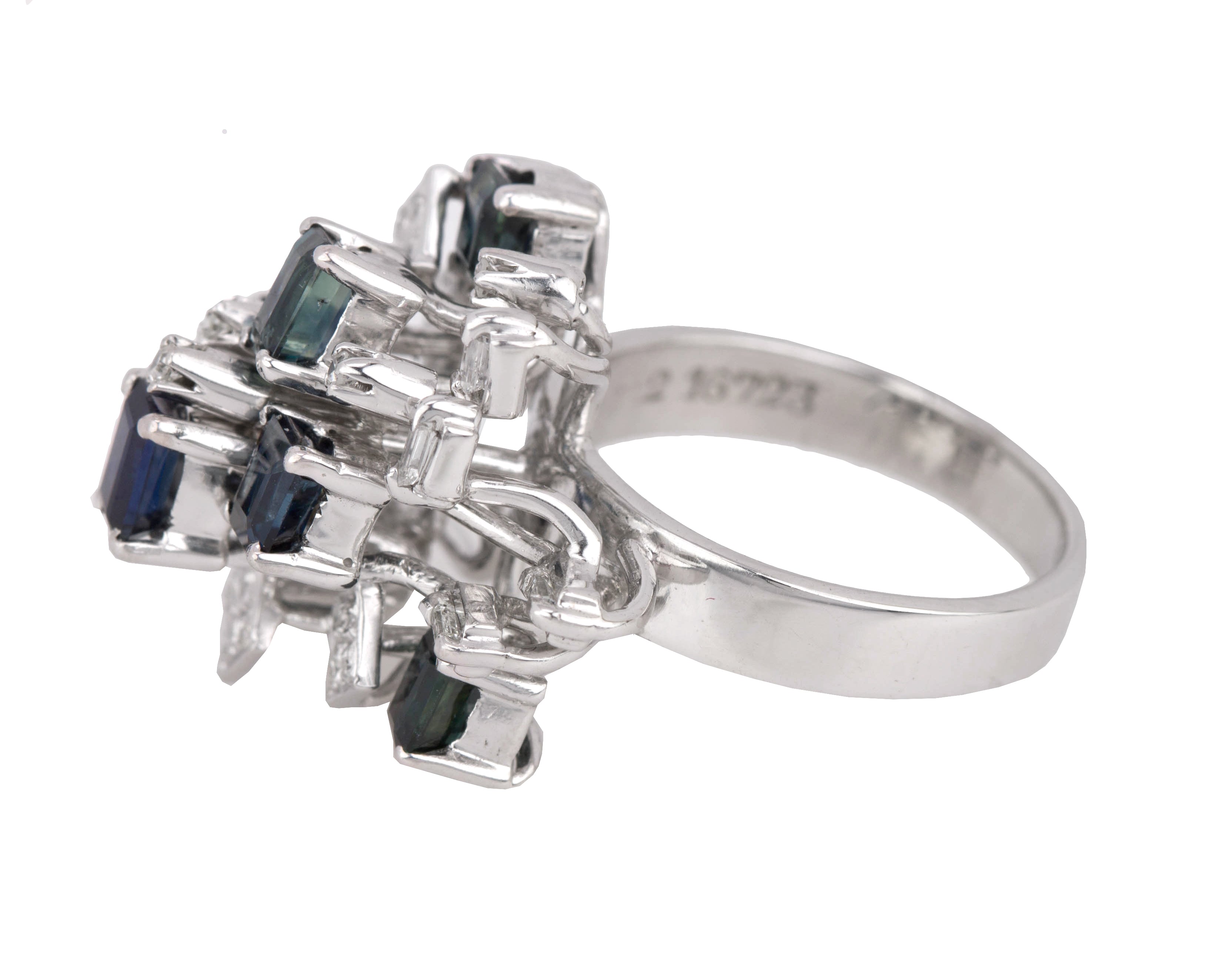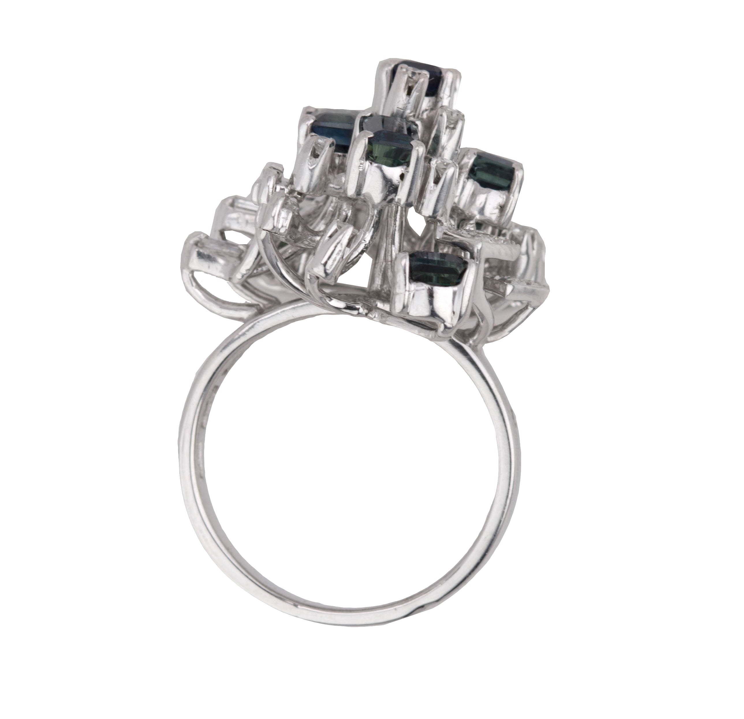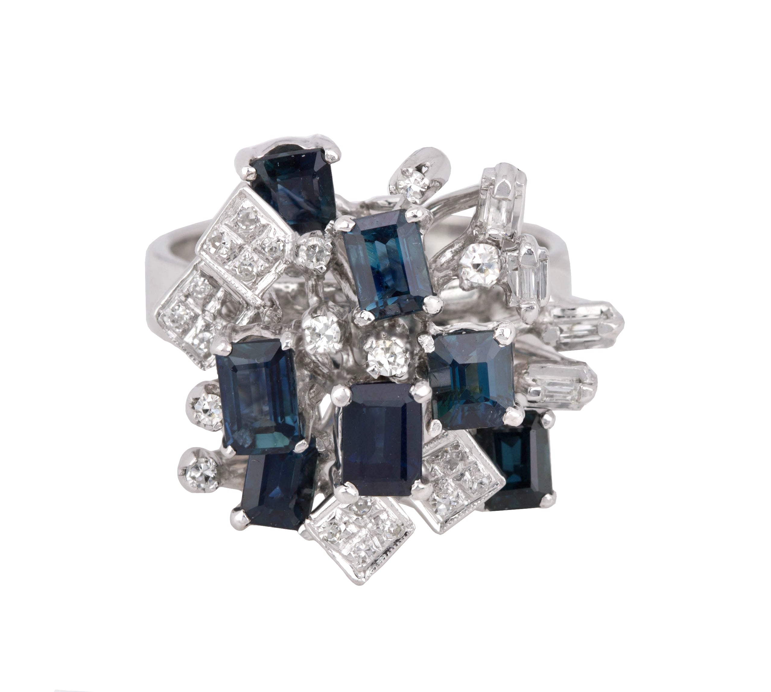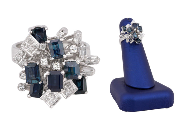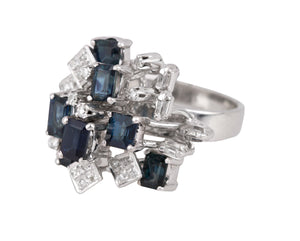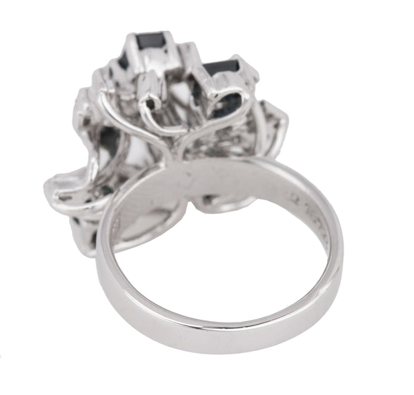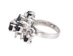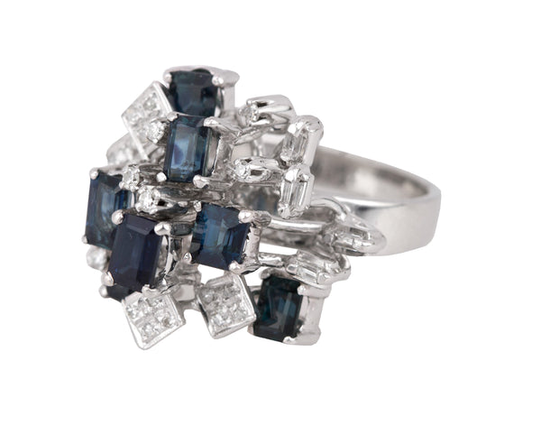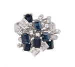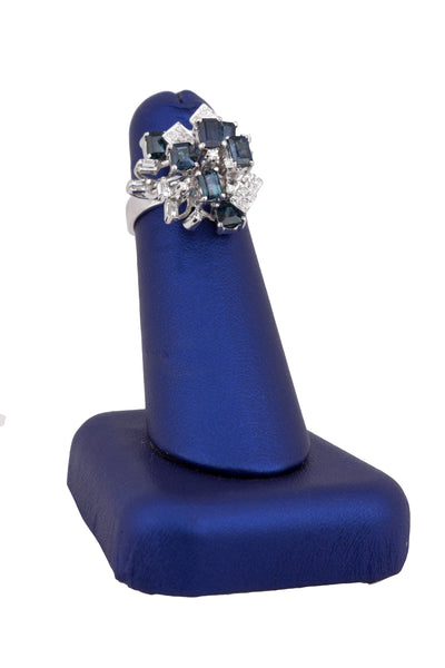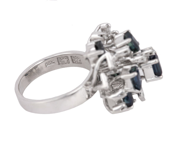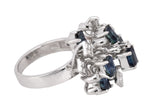 Womens Modern Ornate 18K White Gold 0.27ctw Diamond & Blue Sapphire Cluster Ring
